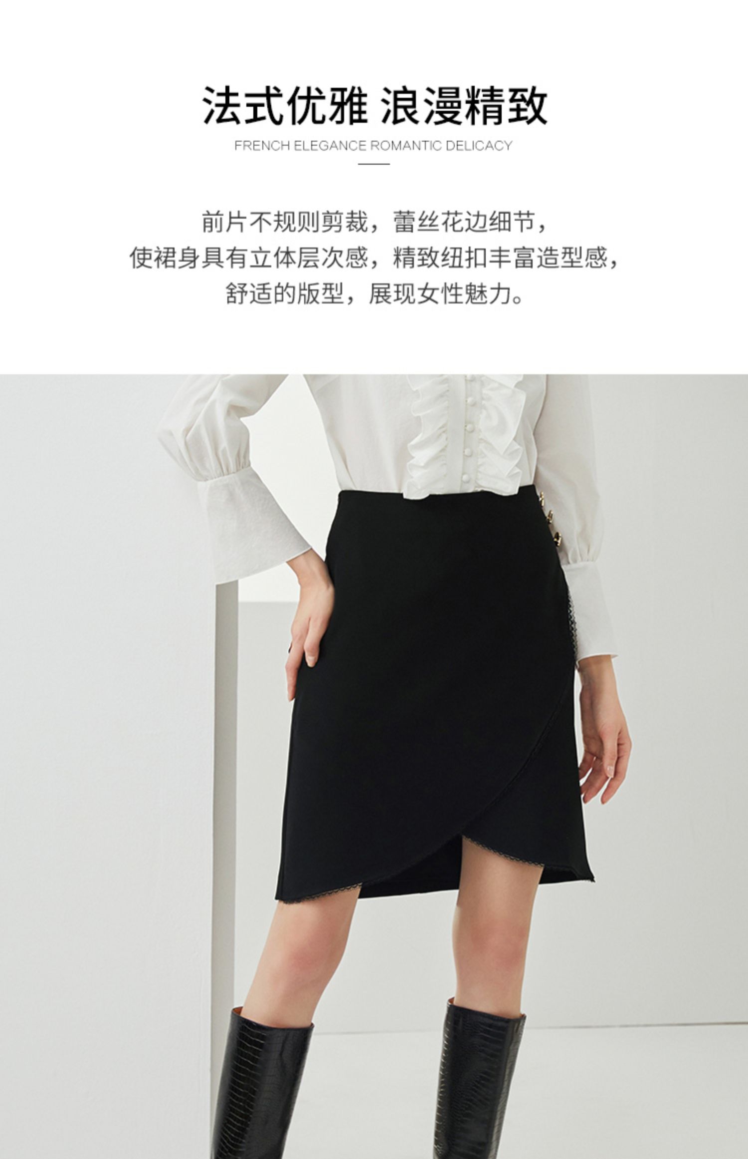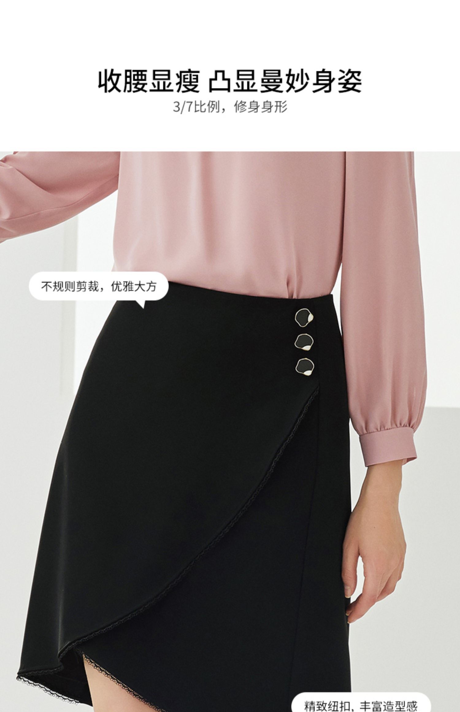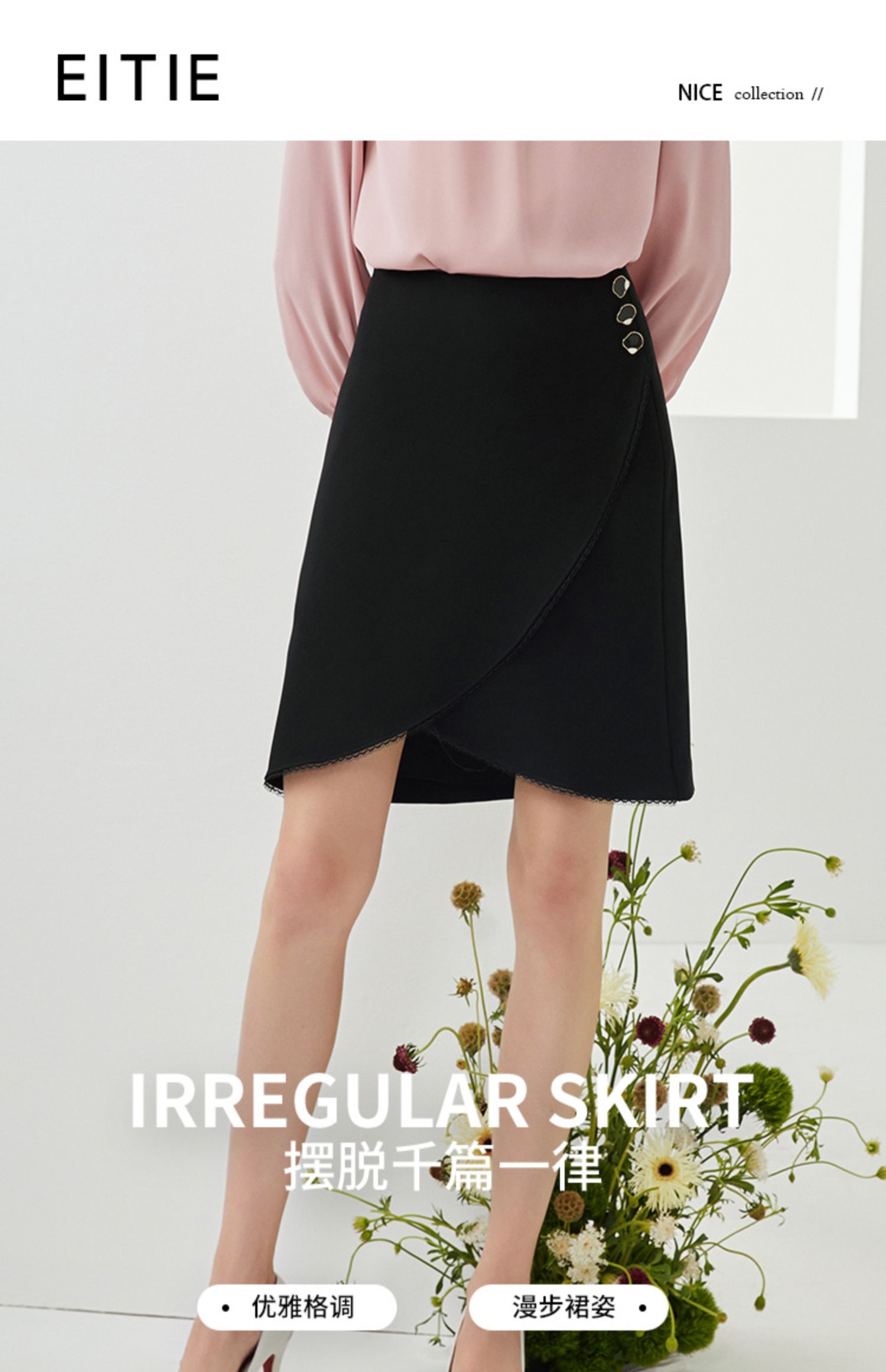 EITIE爱特爱秋季新款时尚通勤显瘦A字百搭不规则下摆半身裙女