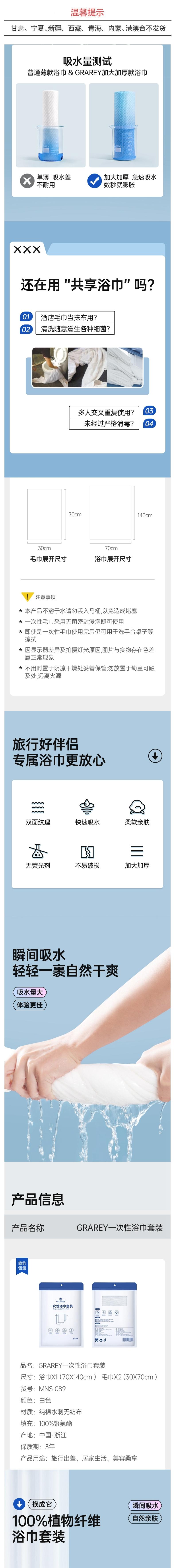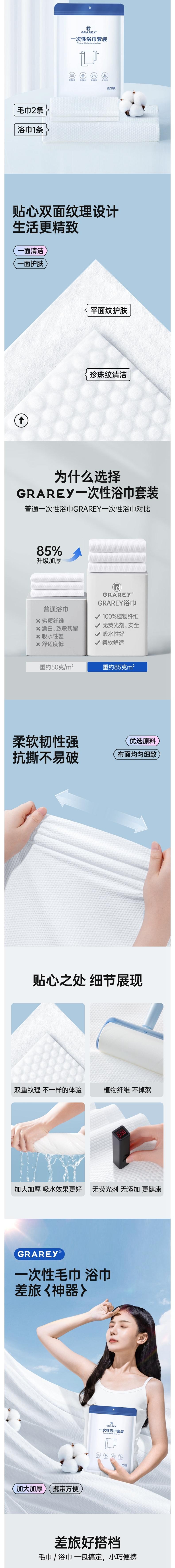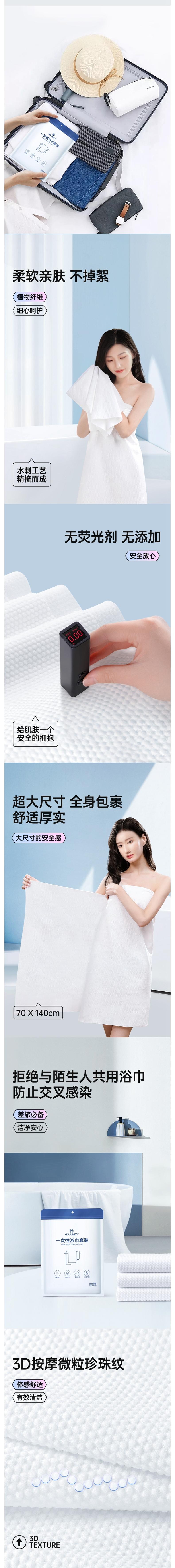 GRAREY格瑞亚 一次性浴巾套装85%加厚(1条浴巾70x140cm,2条毛巾30x70cm)/包*4包 6975217180712