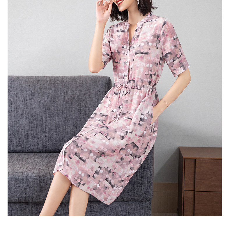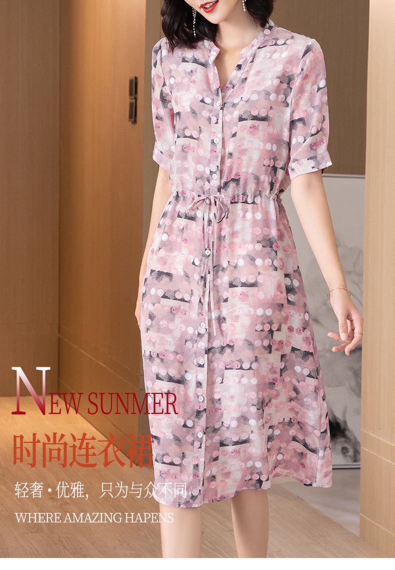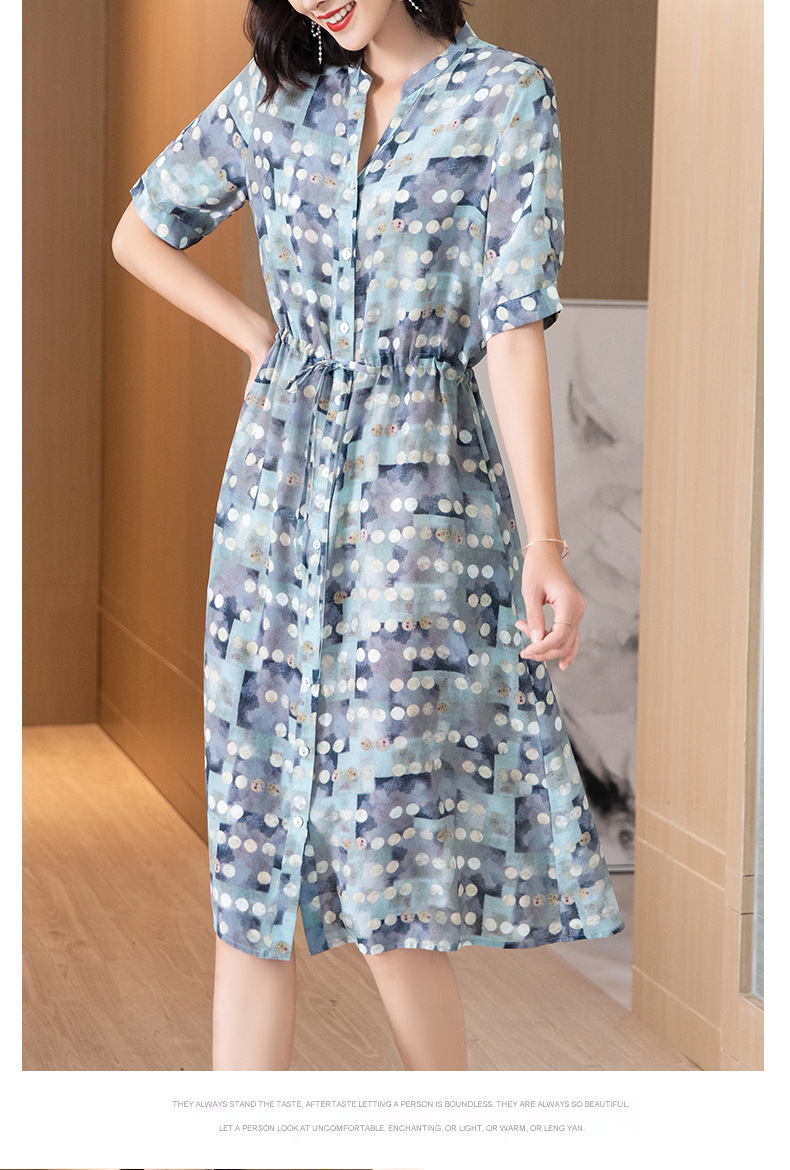 AHM-as0811夏季新款仿真丝中长款气质优雅连衣裙