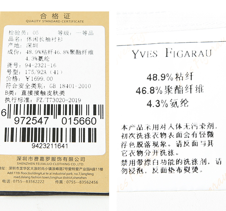 YvesFigarau伊夫·费嘉罗秋冬新款休闲长袖衬衫942321