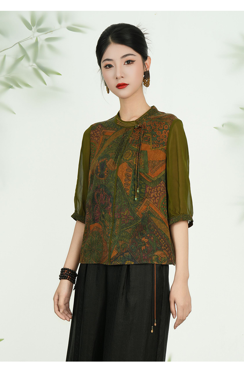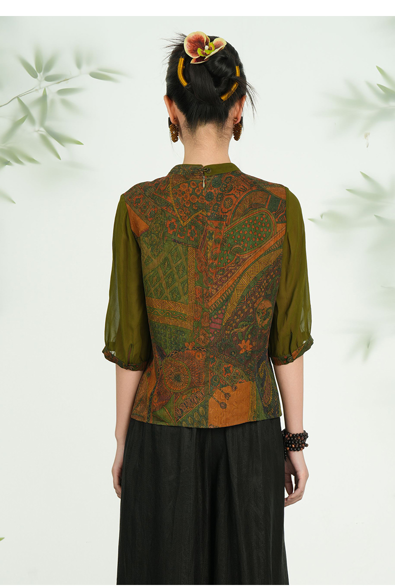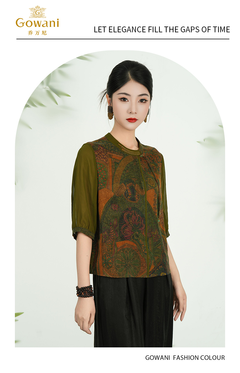【时光画廊】【香云纱】乔万尼2025新品新中式立领拼接宽松真丝上衣ED2C556