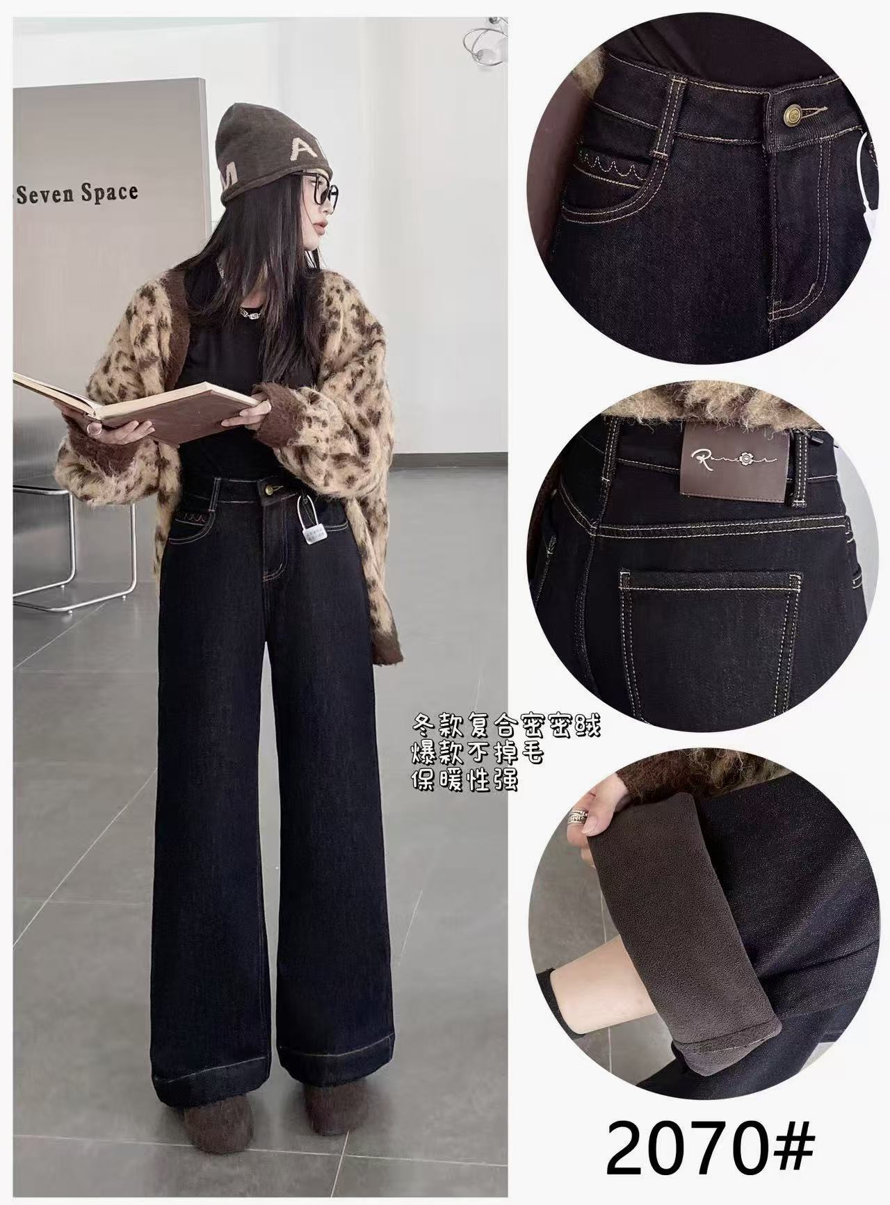 女王节抢购价-不支持退【自营】加绒🔥🔥🔥【爆款牛仔裤】不贴腿的筒喇裤~2070黑金很显瘦牛仔裤冬季加绒不挑人百搭-喜出