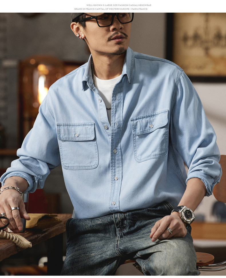【莱赛尔天丝】【DQ】大依优型大码男装莱赛尔天丝休闲长袖衬衫宽松百搭薄款长袖衬衣上衣男士