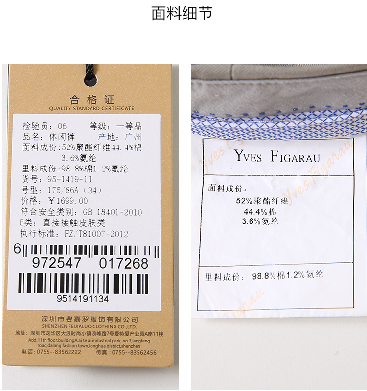 YvesFigarau伊夫·费嘉罗休闲裤951419
