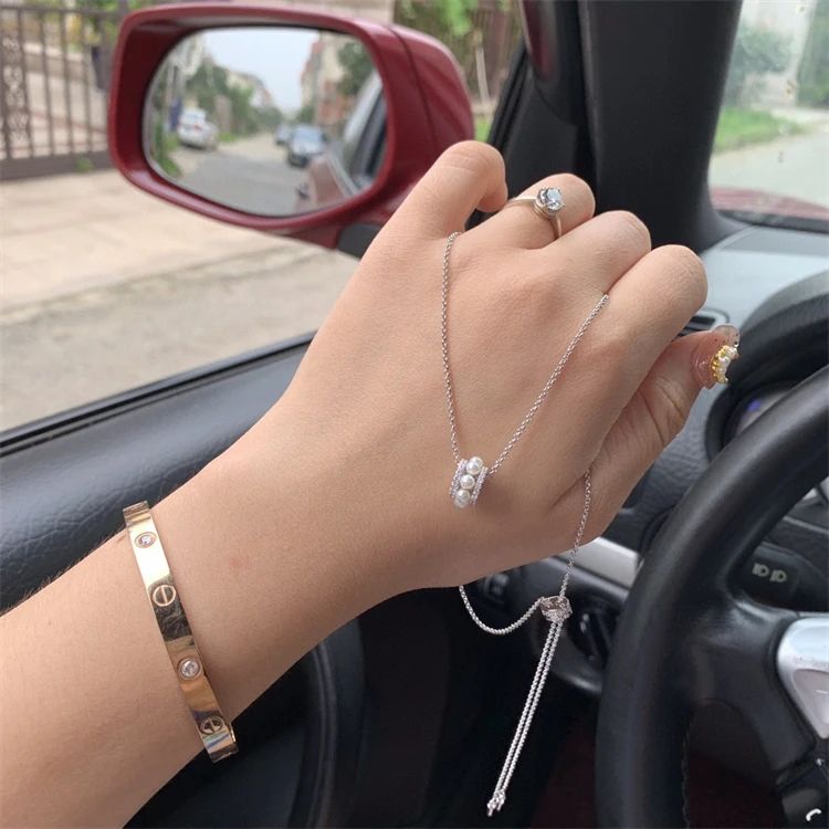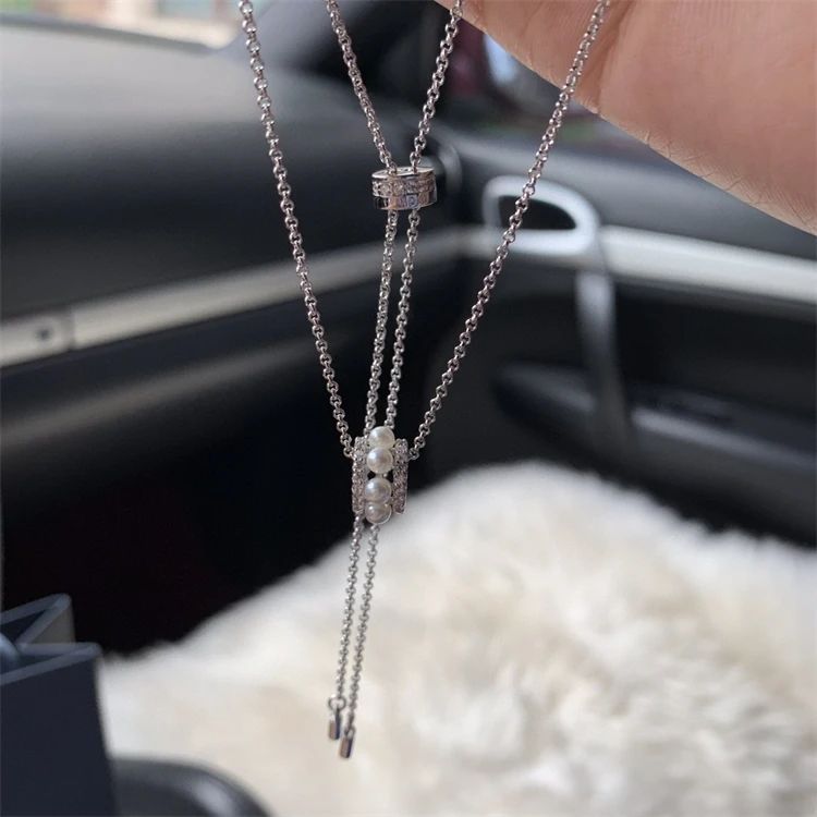 APM 小蛮腰珍珠项链 轻复古法式锁骨链 以魅力设计展现雅致风韵 微镶石粒点缀营造闪耀的优雅细节925银手工微镶晶钻+淡水珍珠,链长可调~65cm官方售价1030元