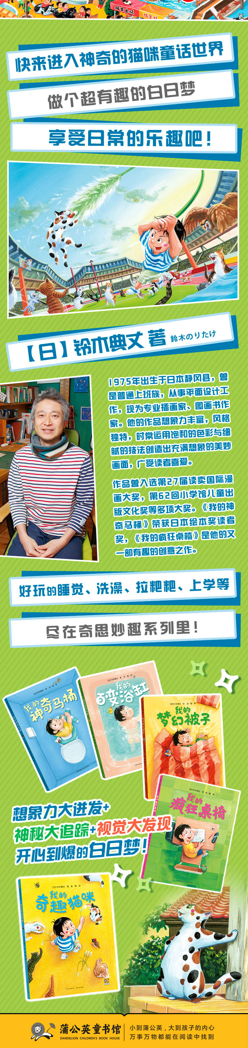 铃木典丈,著,[日]铃木典丈1975年出生于日本静冈县,曾是普通上班族,从事平面设计工作,现为专业插画家、图画书作家。他的作品想象力丰富,风格独特,时常运用饱和的色彩与细腻的技法创造出充满想象的美妙画面,广受读者喜爱。