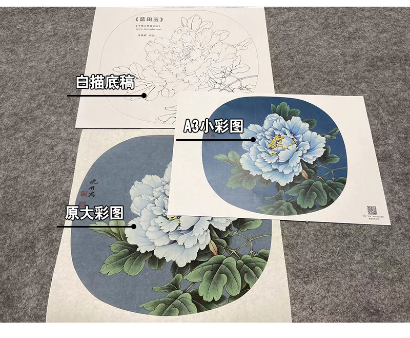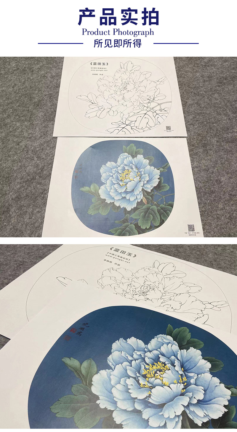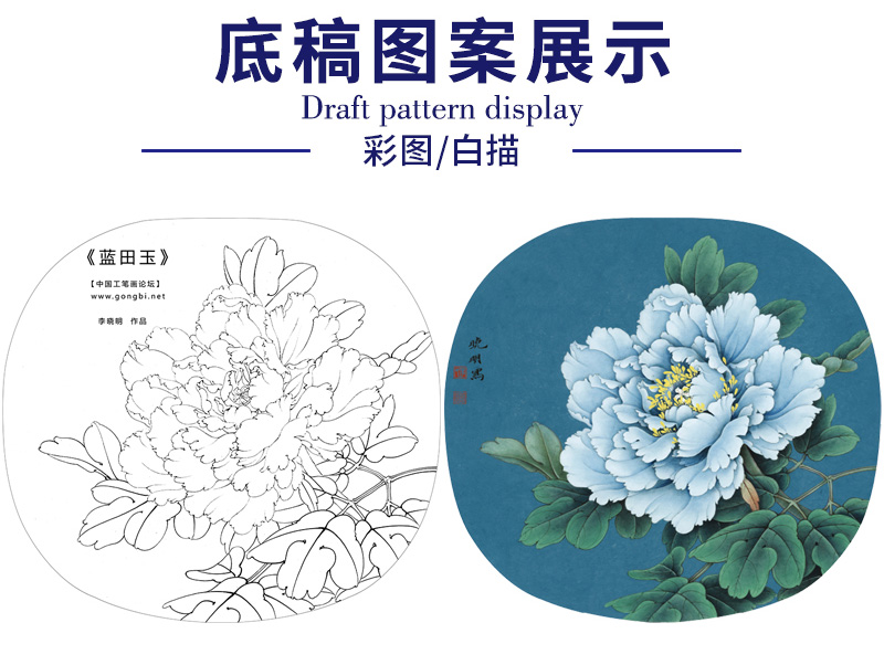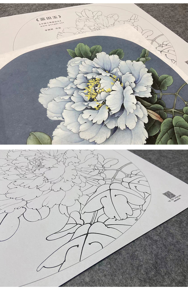 【大彩图】李晓明工笔画白描底稿小品《蓝田玉》牡丹临摹勾线花鸟线稿K014