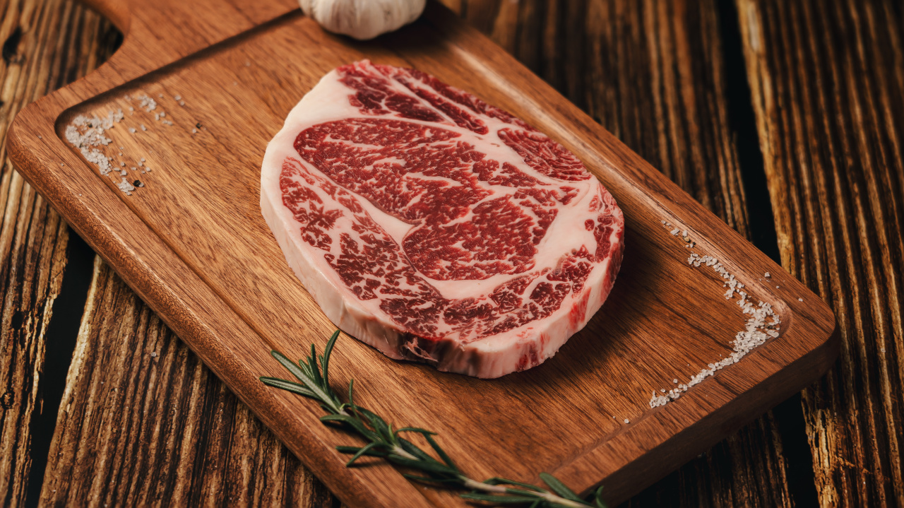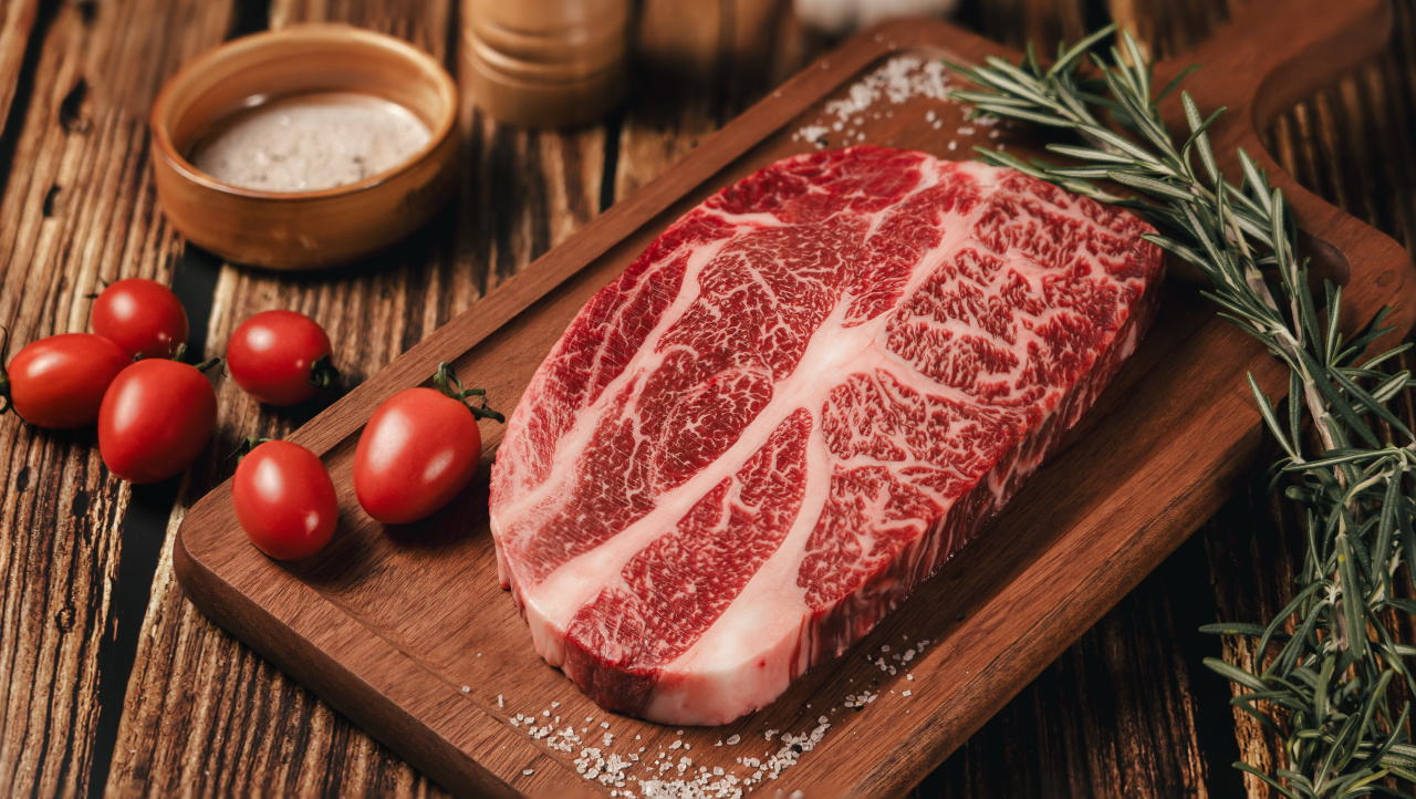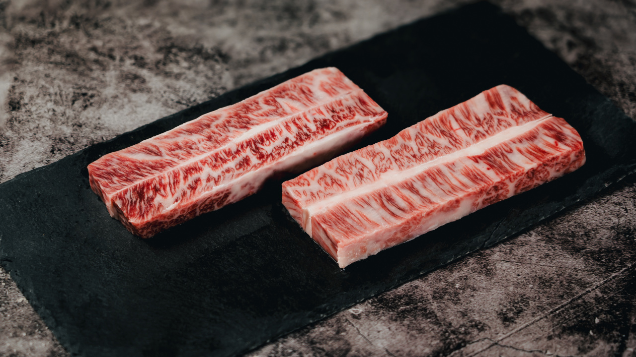 眼肉:外脊背部中段部位,雪花丰富且分布均匀,肉质柔嫩,品质最高且最具风味的部位。推荐煎、烤。西式原切约2cm厚度。