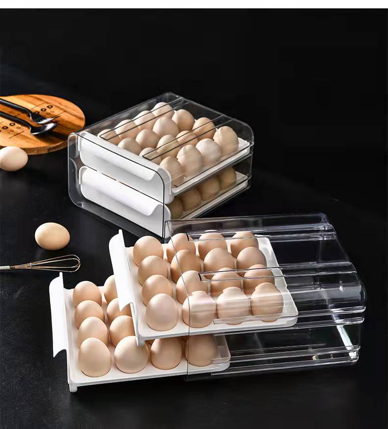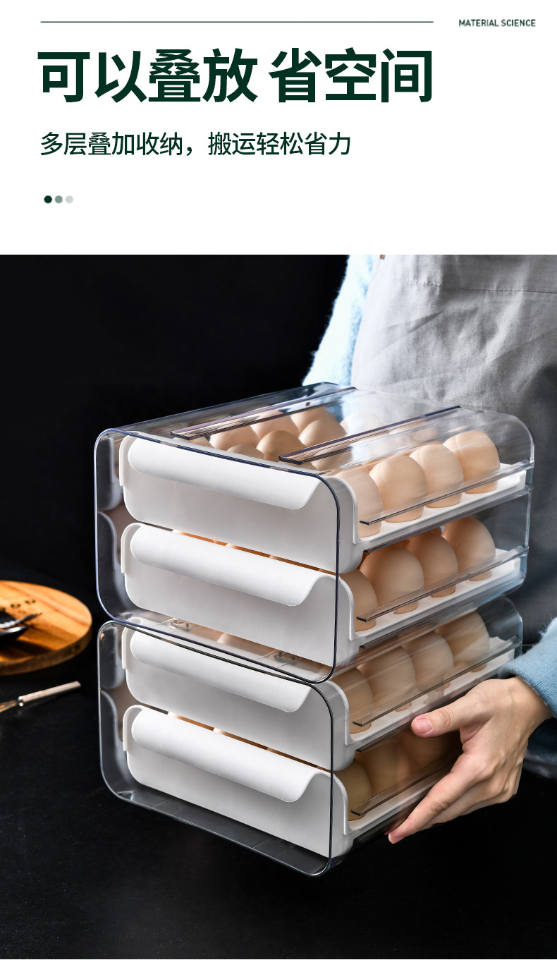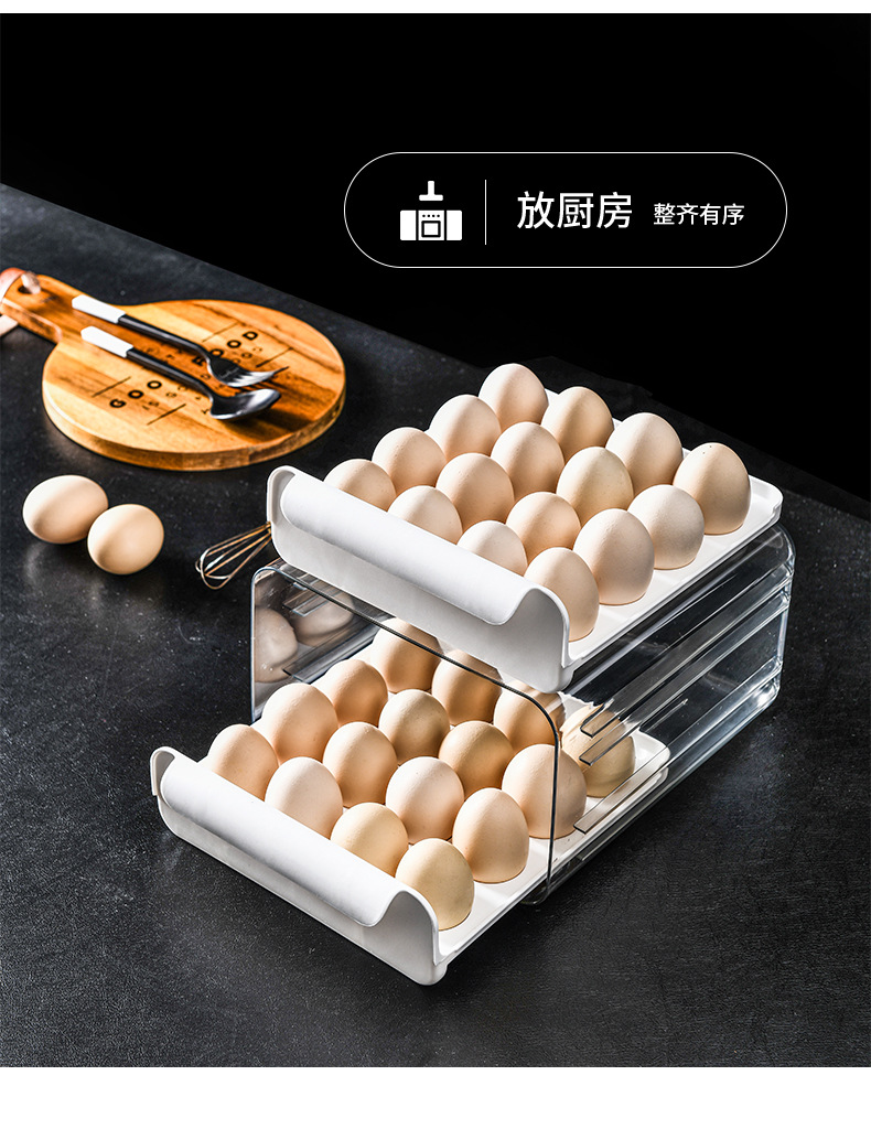 【叠放更省空间 轻松收纳防碰撞】32格鸡蛋收纳盒双层整理鸡蛋盒抽屉式保鲜盒厨房冰箱放鸡蛋盒蛋托