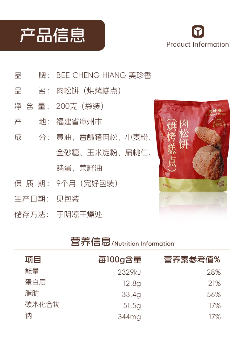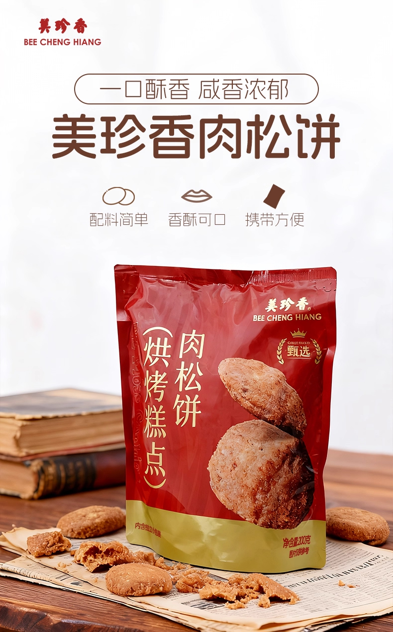 【新品限时65折 到手52元 过时无补】美珍香肉松饼200g饼干休闲零食小吃传统烘烤糕点猪肉松曲奇饼干 独立小包装