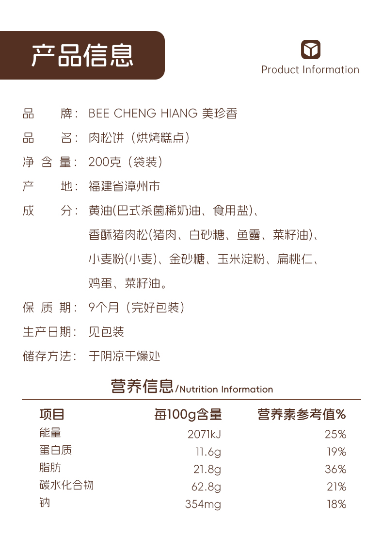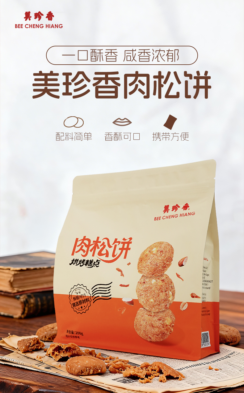 【新品】美珍香肉松饼200g饼干休闲零食小吃传统烘烤糕点猪肉松曲奇饼干 独立小包装