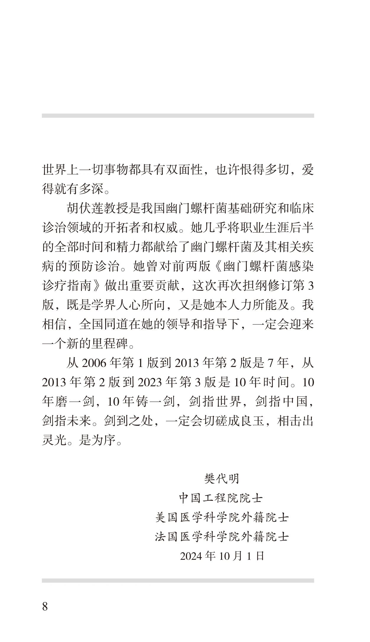 北京大学第一医院消化内科教授,自1985年起,便致力于幽门螺杆菌及相关疾病的研究,是我国该领域的开拓者和学术带头人。胡伏莲教授主持并组织了一系列关于幽门螺杆菌的全国多中心临床研究及基础研究,发表论文及述评300余篇,曾荣获《中华医学杂志》创刊90周年和105周年的“金笔奖”及2023年的“金策奖”。主编了《幽门螺杆菌感染的基础与临床》、我国首部《整合胃生态学》、《幽门螺杆菌感染的基础与临床》和《幽门螺杆菌诊疗指南》等多部幽门螺杆菌专著,以及《曲径通“幽”:揭开幽门螺杆菌神秘面纱》等科普著作,向大众普及相关知识。科研成果多次获得国家卫生健康委员会和北京市科技进步奖。
