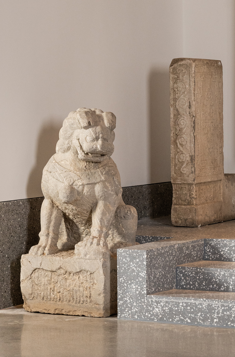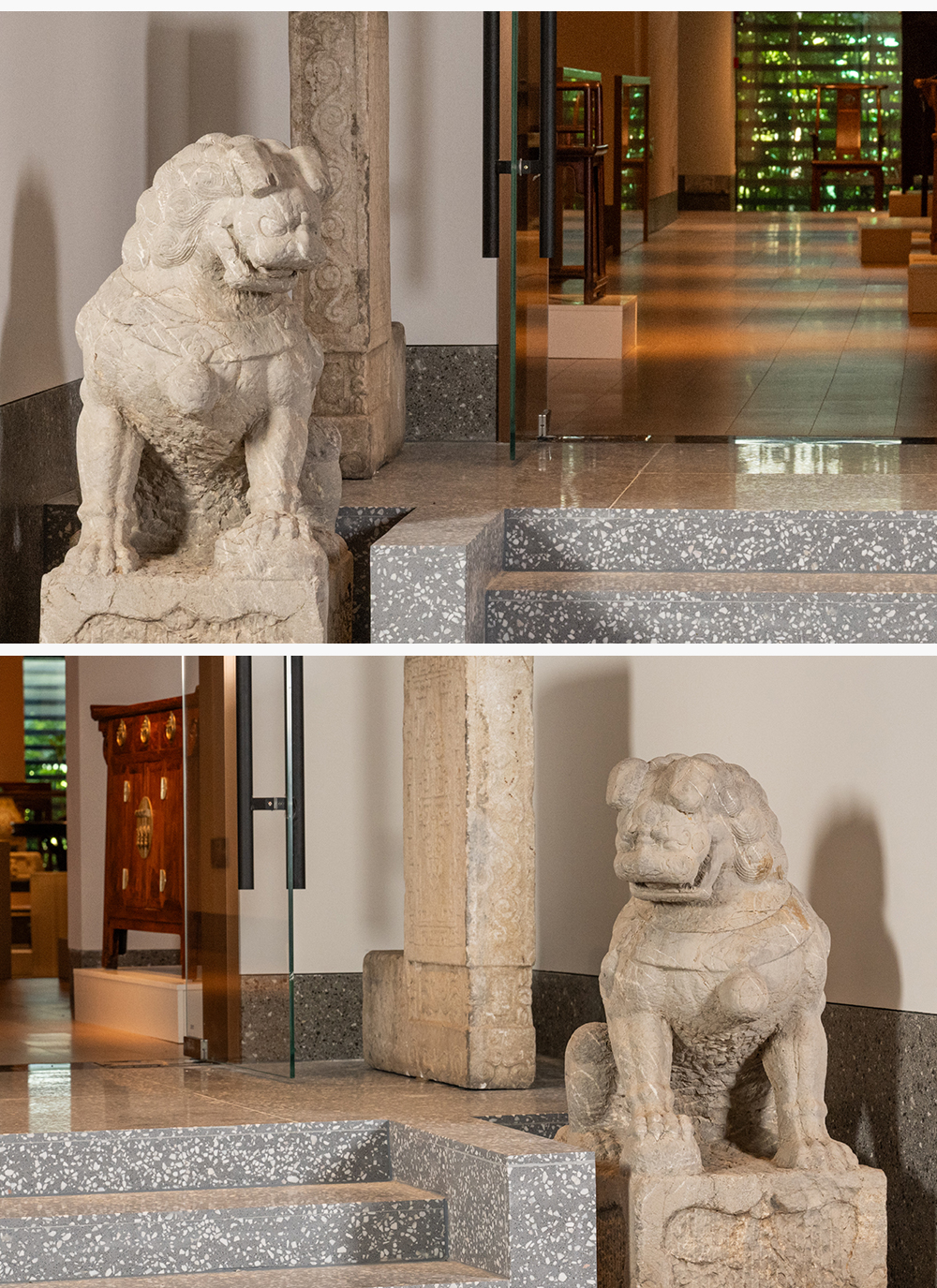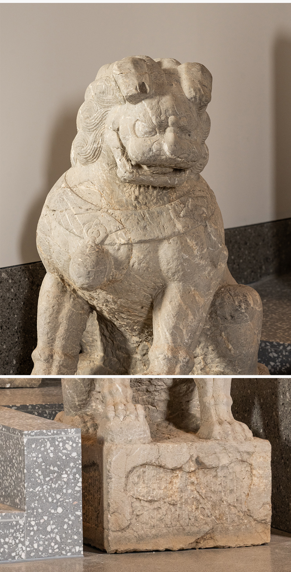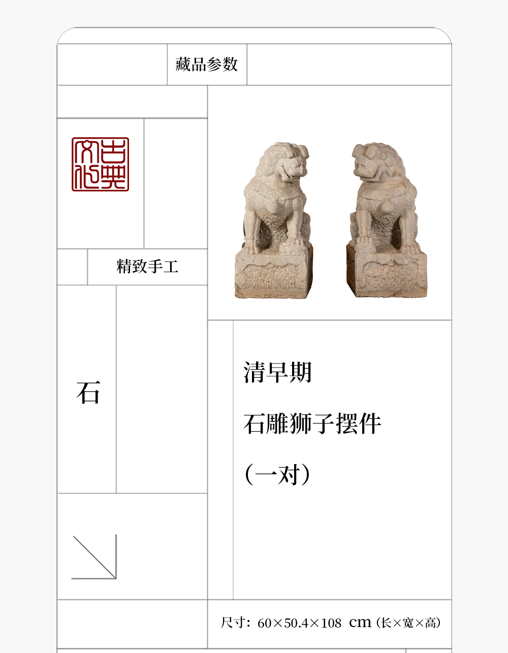 清早期 石雕狮子摆件(一对)