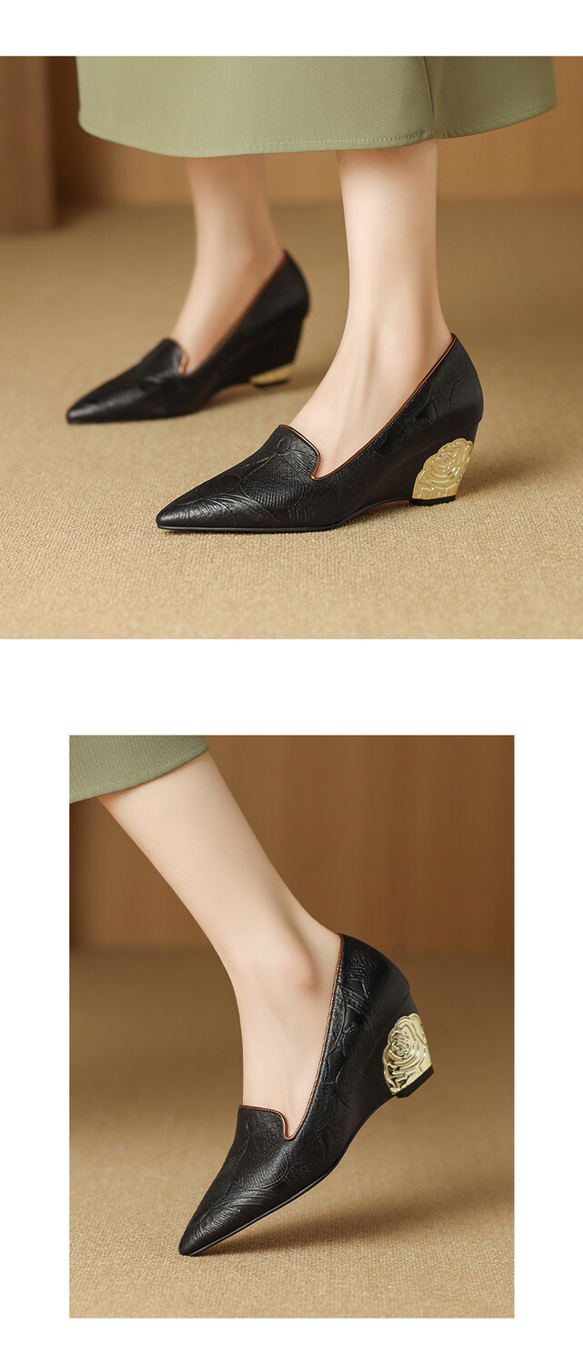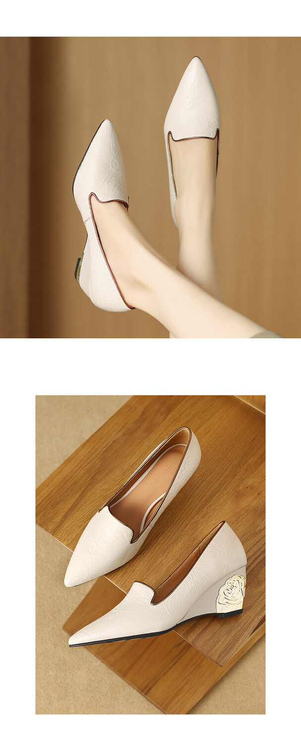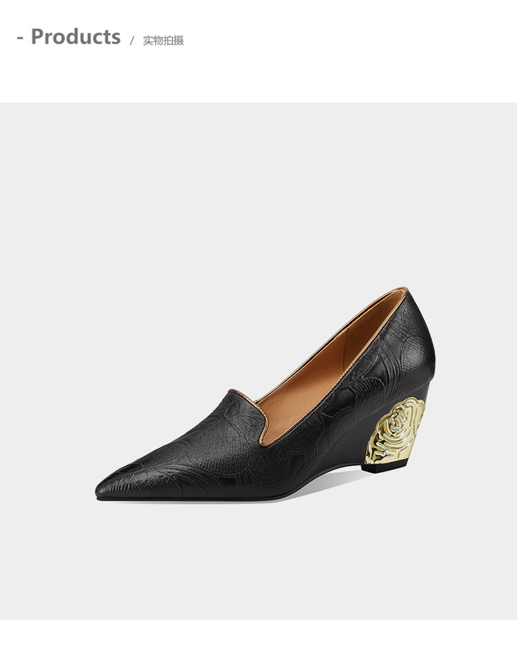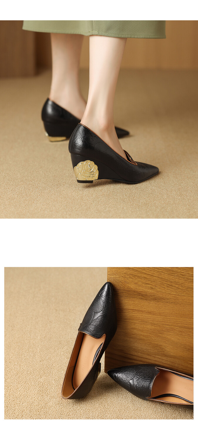 【预售7天】法式里外全皮坡跟单鞋尖头百搭浅口坡高跟鞋MLS&A817