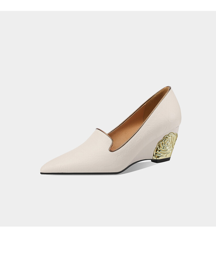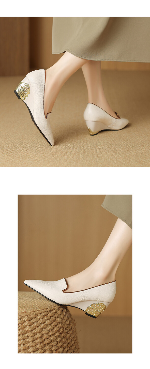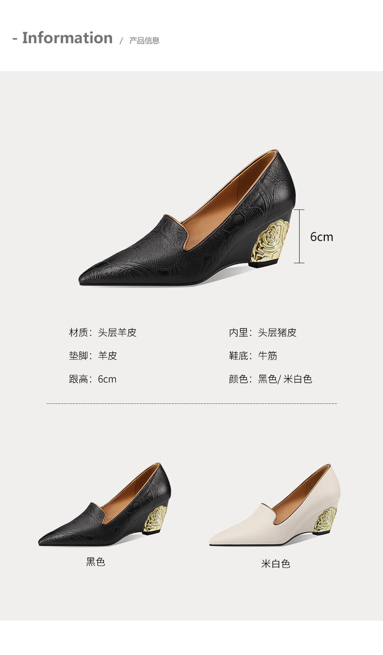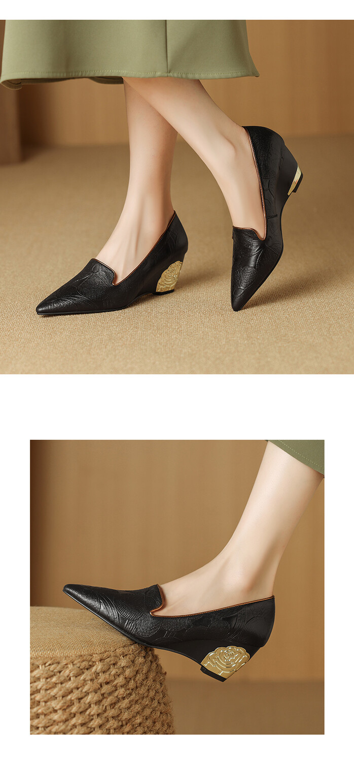 【预售7天】法式里外全皮坡跟单鞋尖头百搭浅口坡高跟鞋MLS&A817