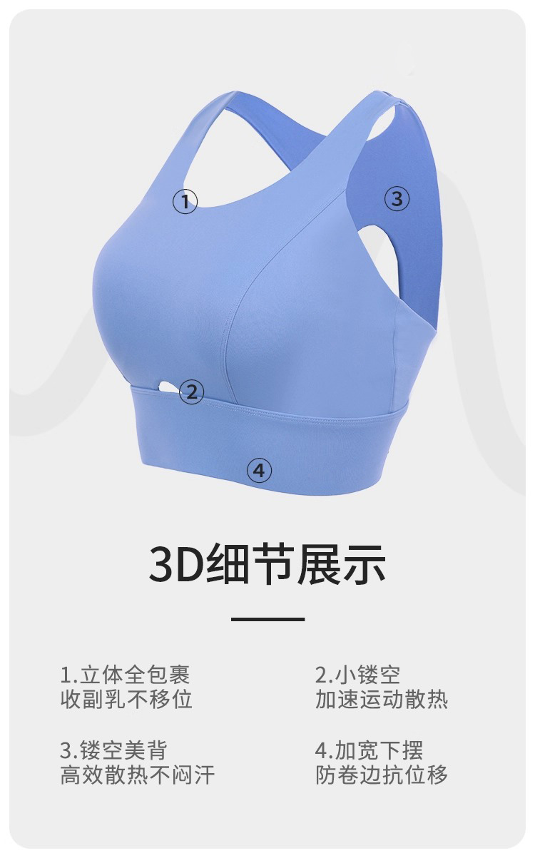 跃牌【安琪拉系列】新款高强度防震聚拢运动内衣大码健身瑜伽背心一体杯WX3010