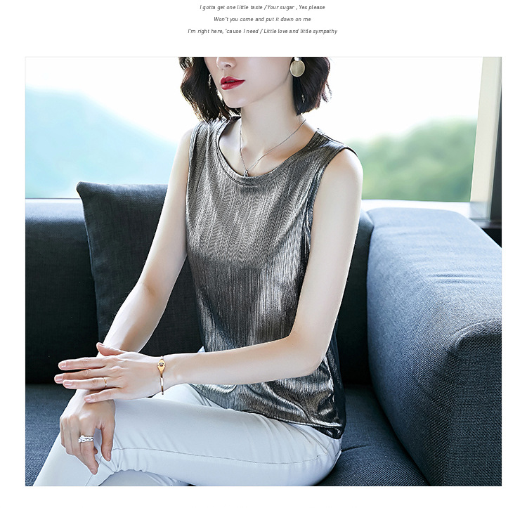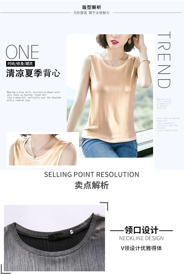 MZ-MZ3543闪闪亮片无袖背心女外穿夏季宽松时尚v领吊带小衫WY