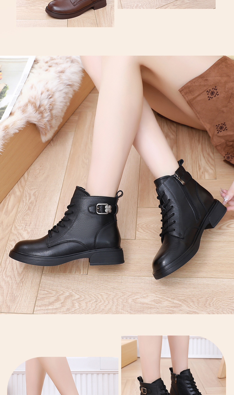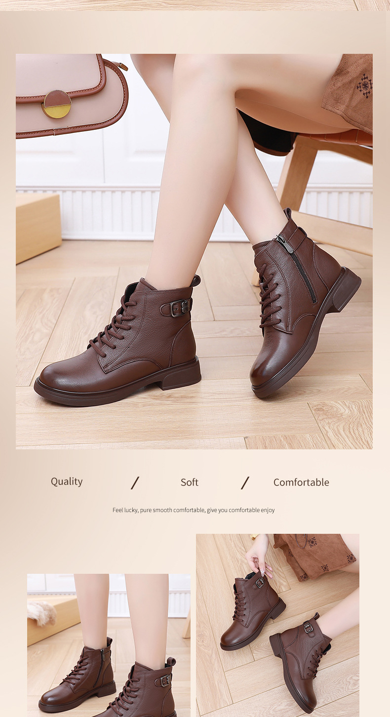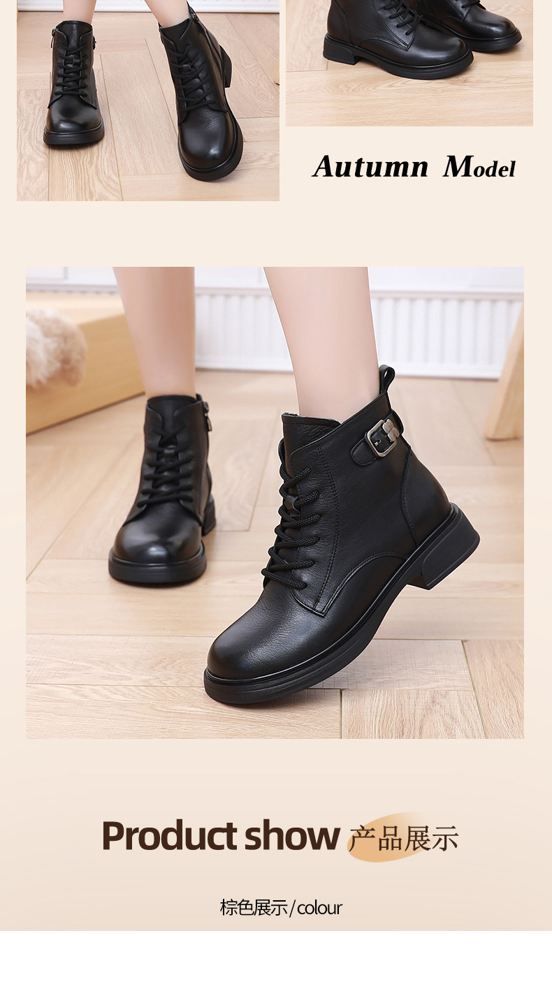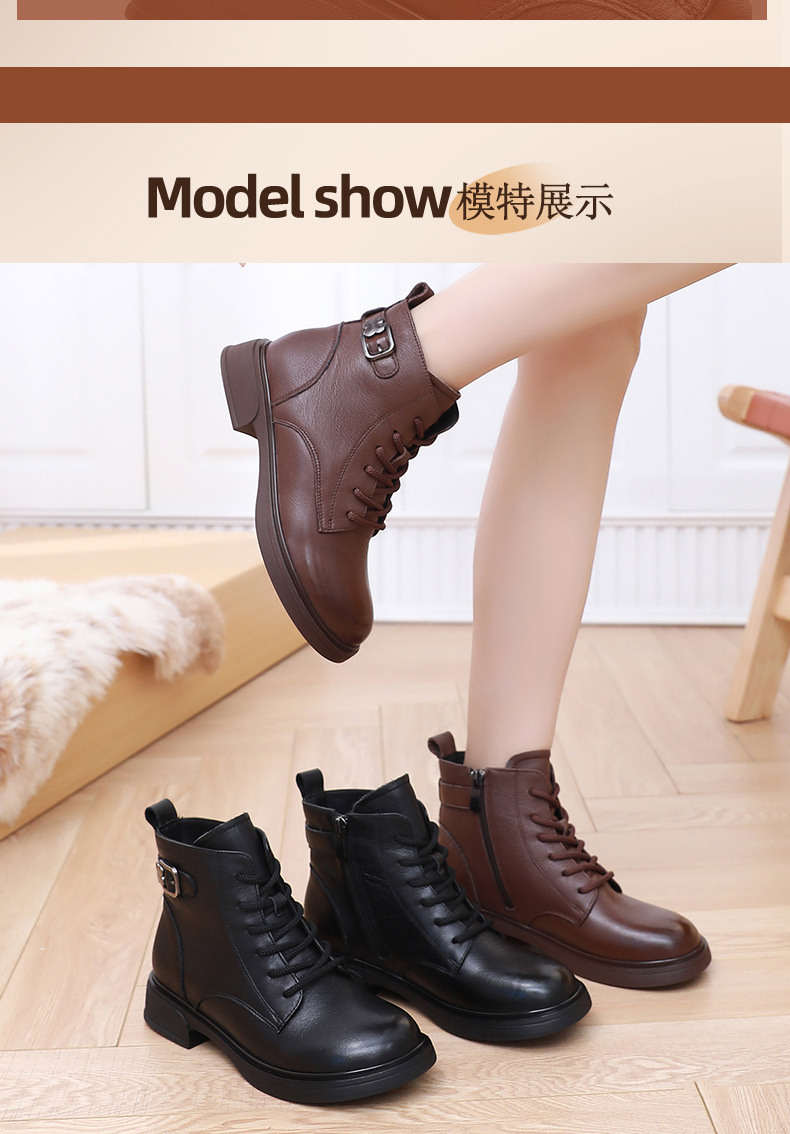 丁摩 短靴女头层牛皮圆头系带高帮靴秋冬复古百搭软底马丁靴单靴棉靴5ZF-2696