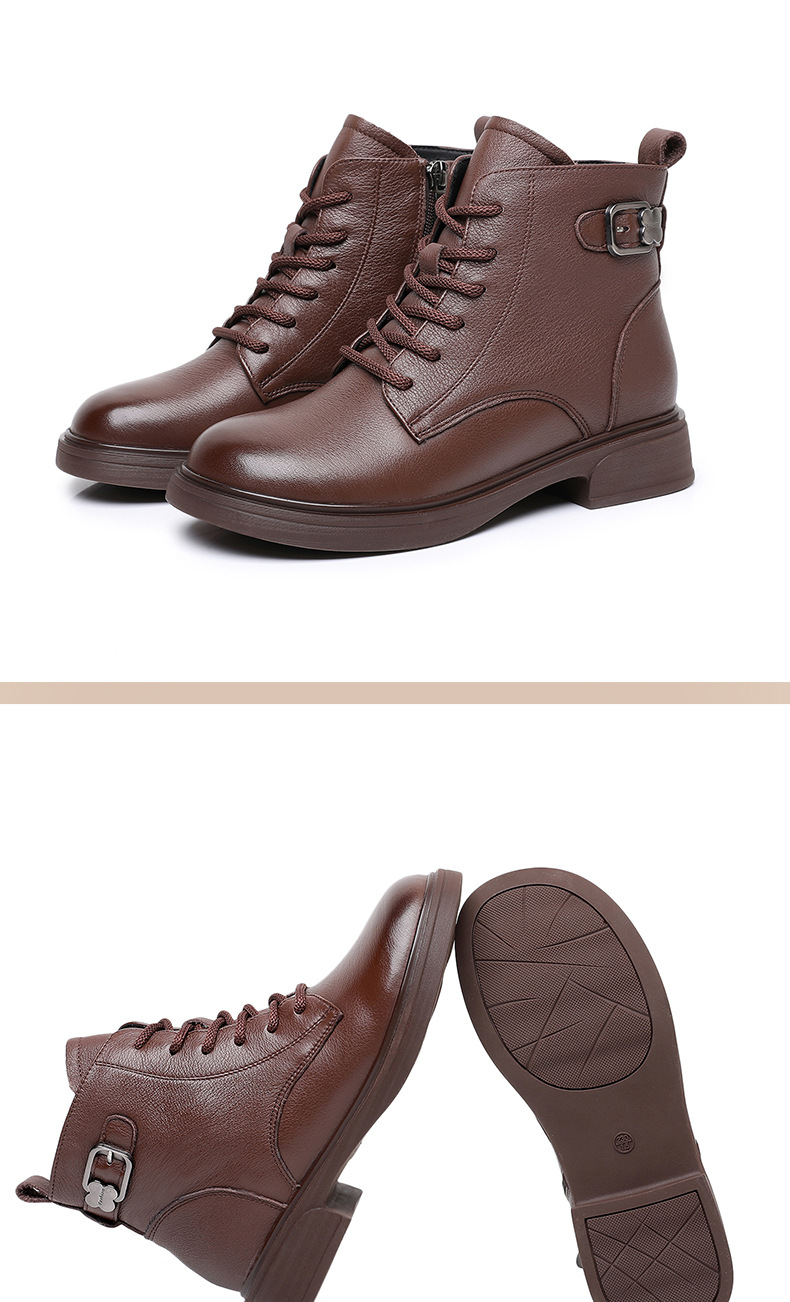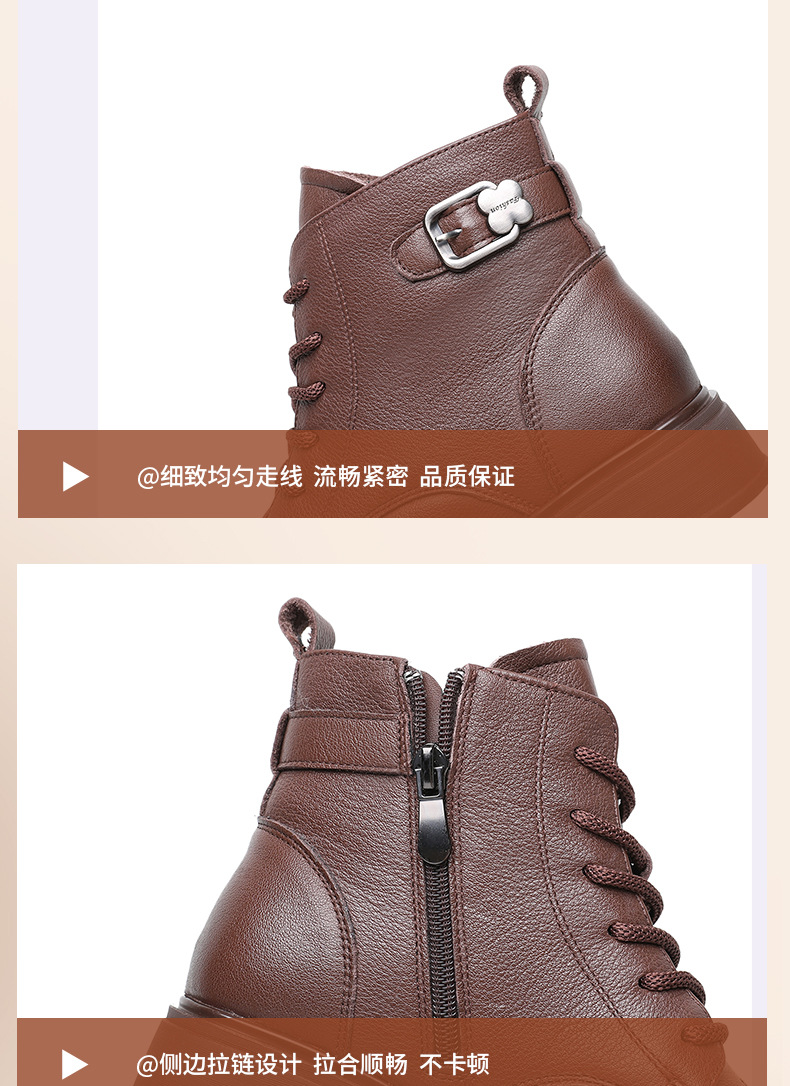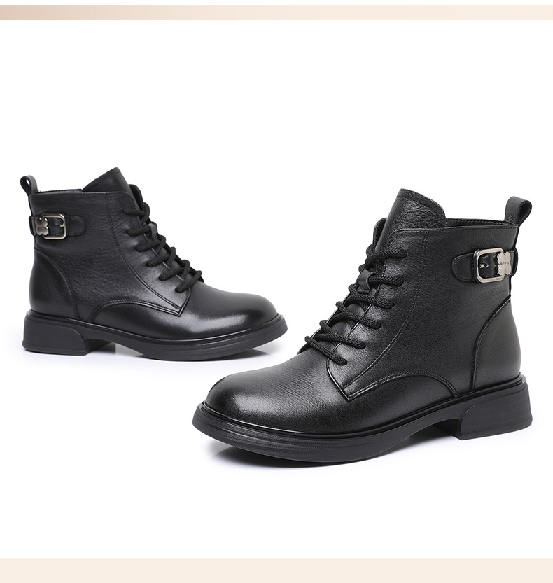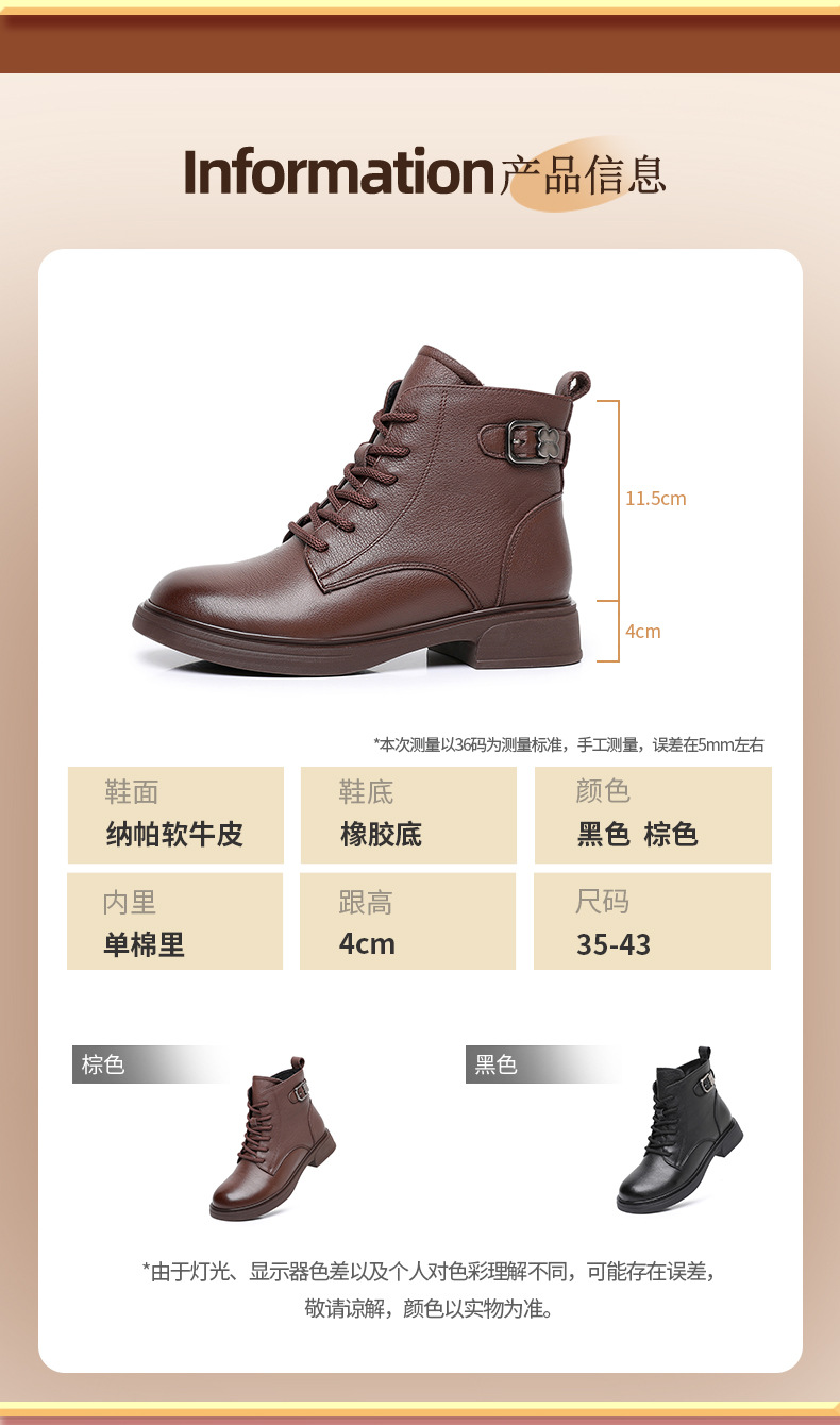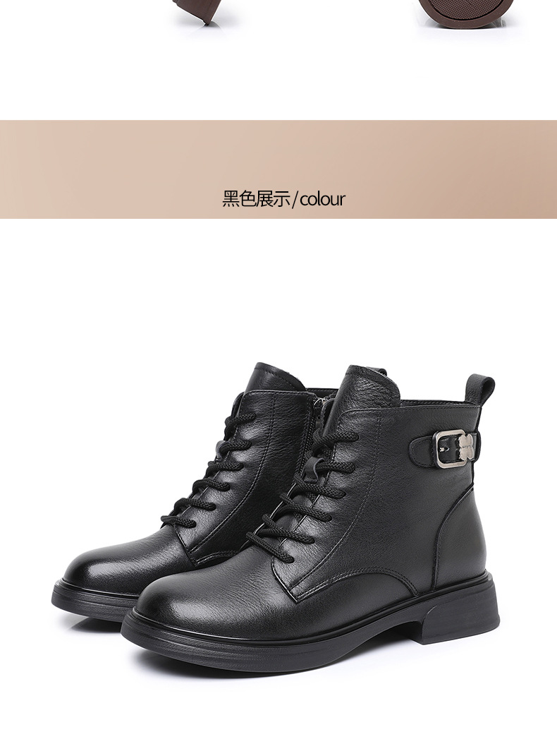 丁摩 短靴女头层牛皮圆头系带高帮靴秋冬复古百搭软底马丁靴单靴棉靴5ZF-2696