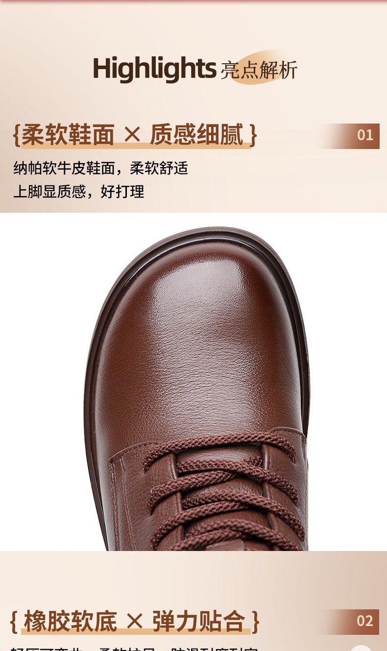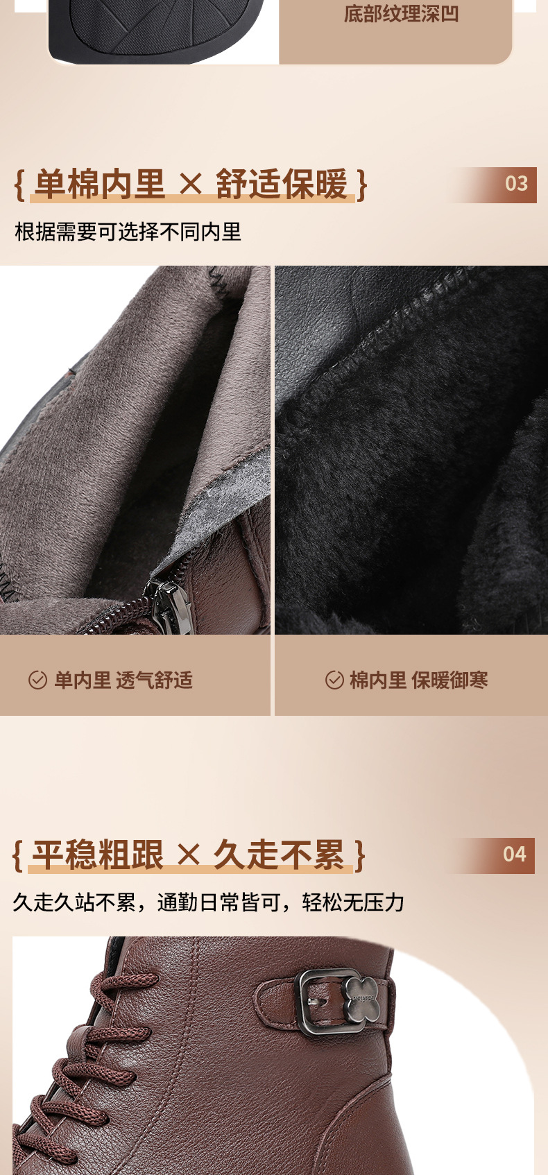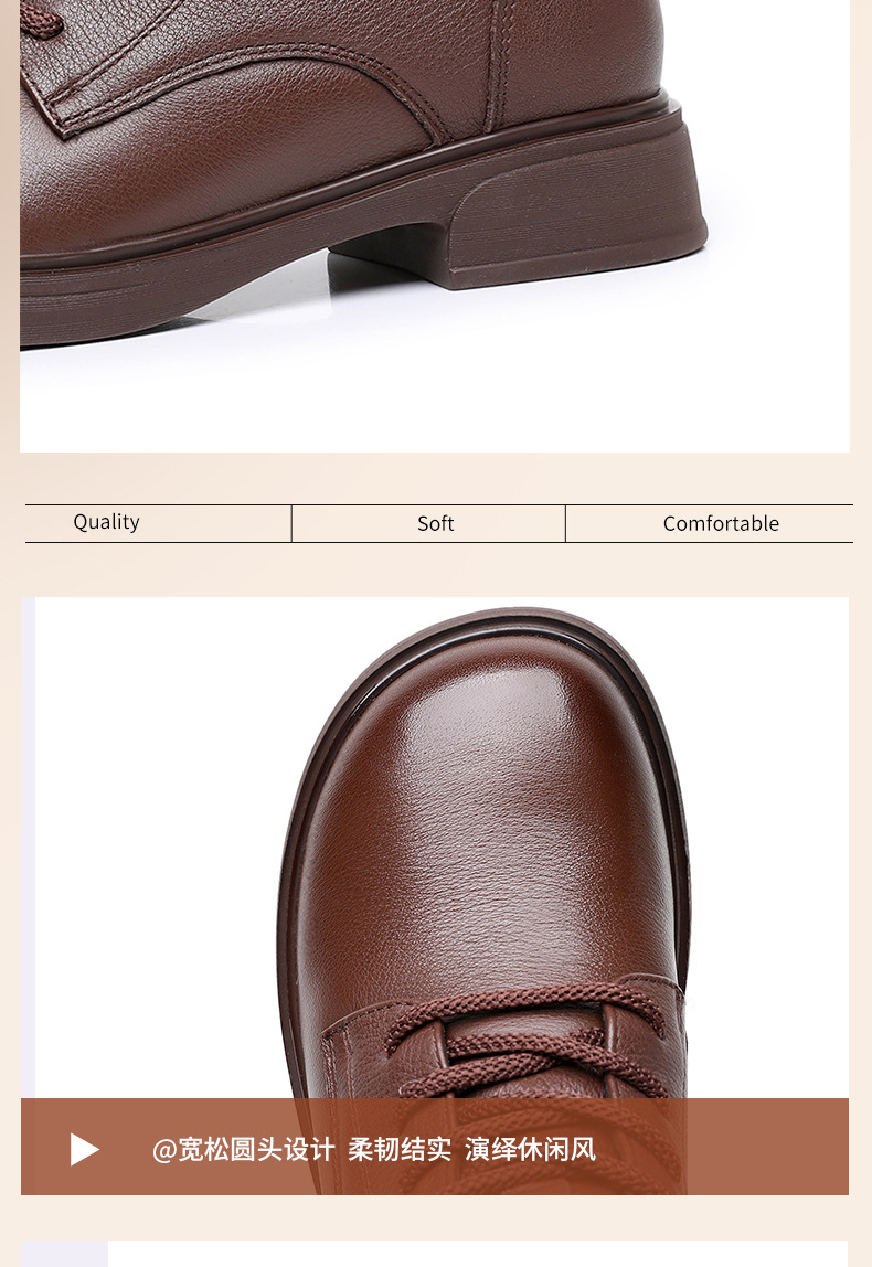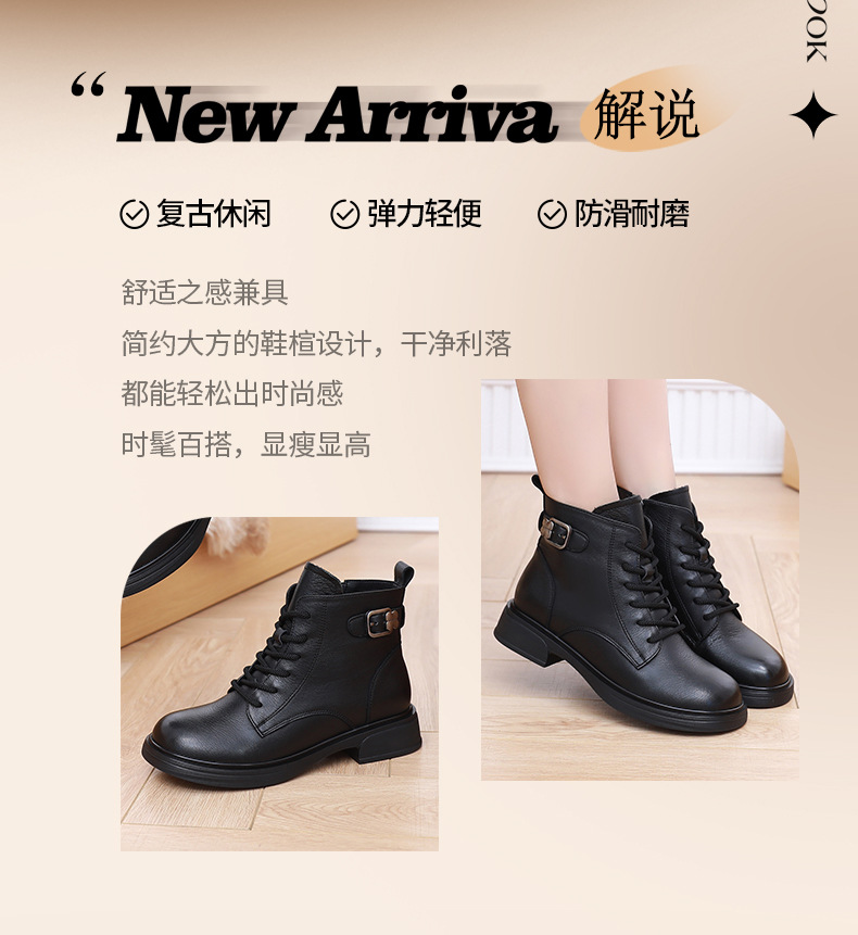 丁摩 短靴女头层牛皮圆头系带高帮靴秋冬复古百搭软底马丁靴单靴棉靴5ZF-2696