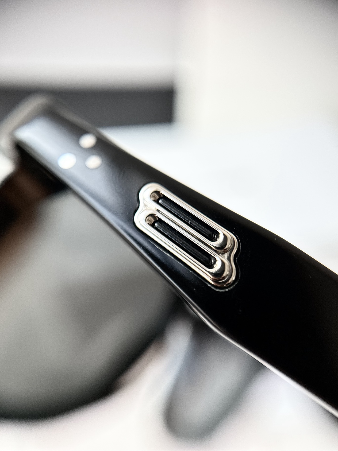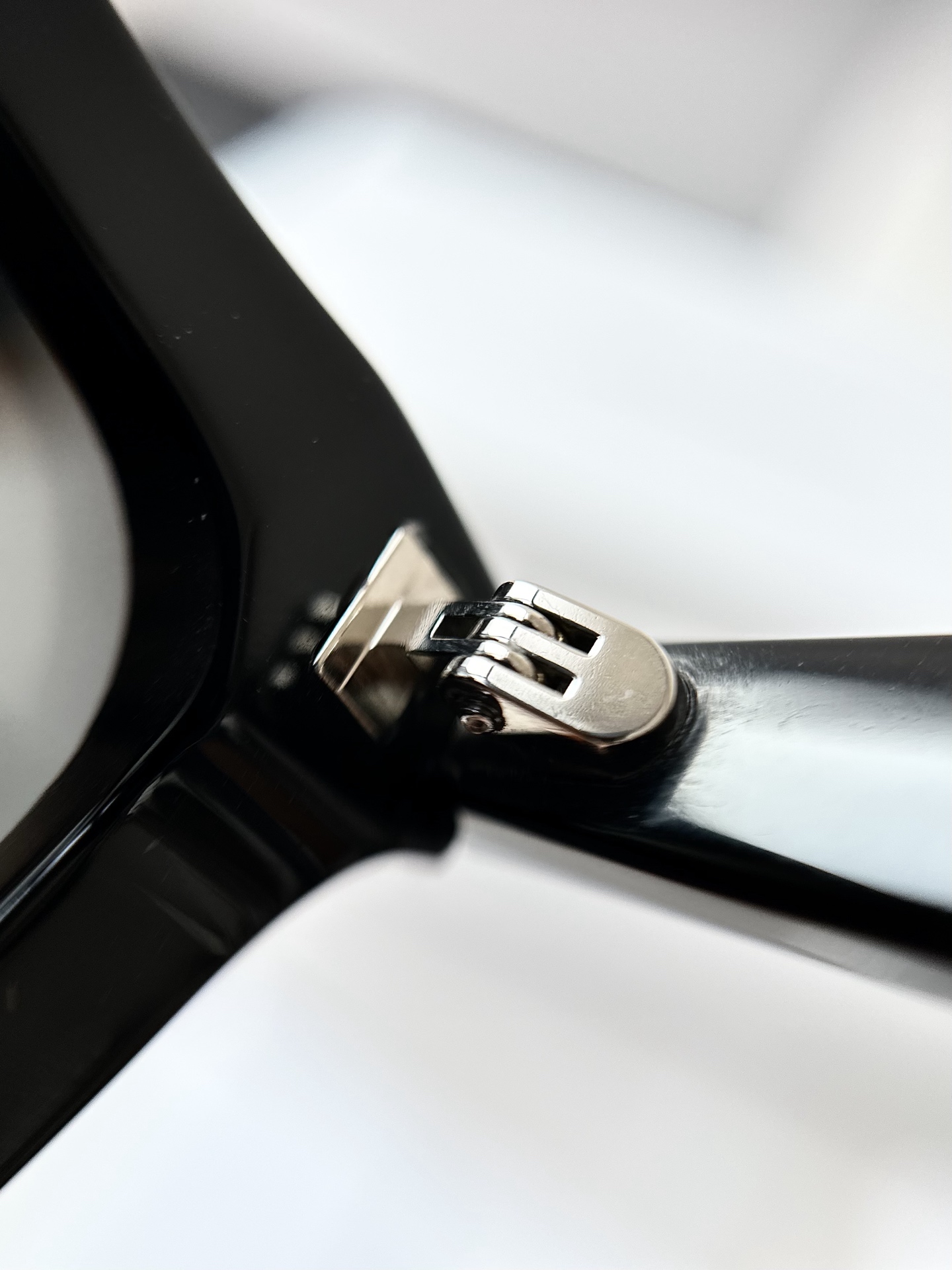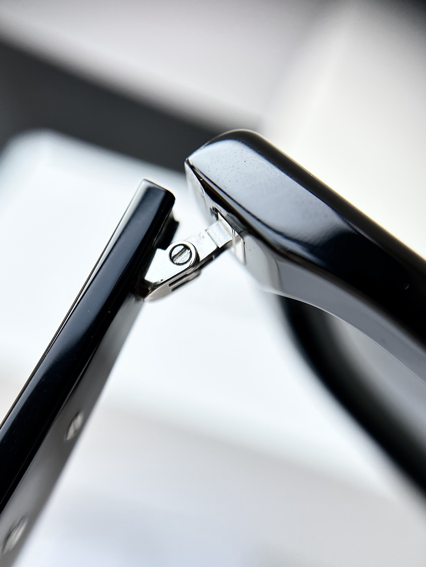 正品一致金属铰链加固 外侧镶嵌logo拿在手里能感觉出来质感,镜框光滑无毛刺!