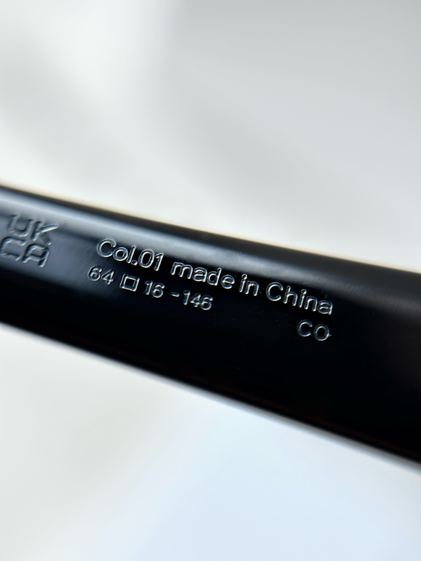 颜色:黑色 正面: 147.3mm, 镜脚: 146.4mm。宽度: 63.6mm, 高度: 44.8mm。鼻梁: 16mm