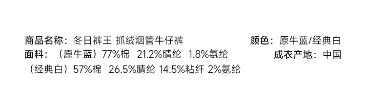 冬日裤王 抓绒烟管牛仔裤FCF3JEN150