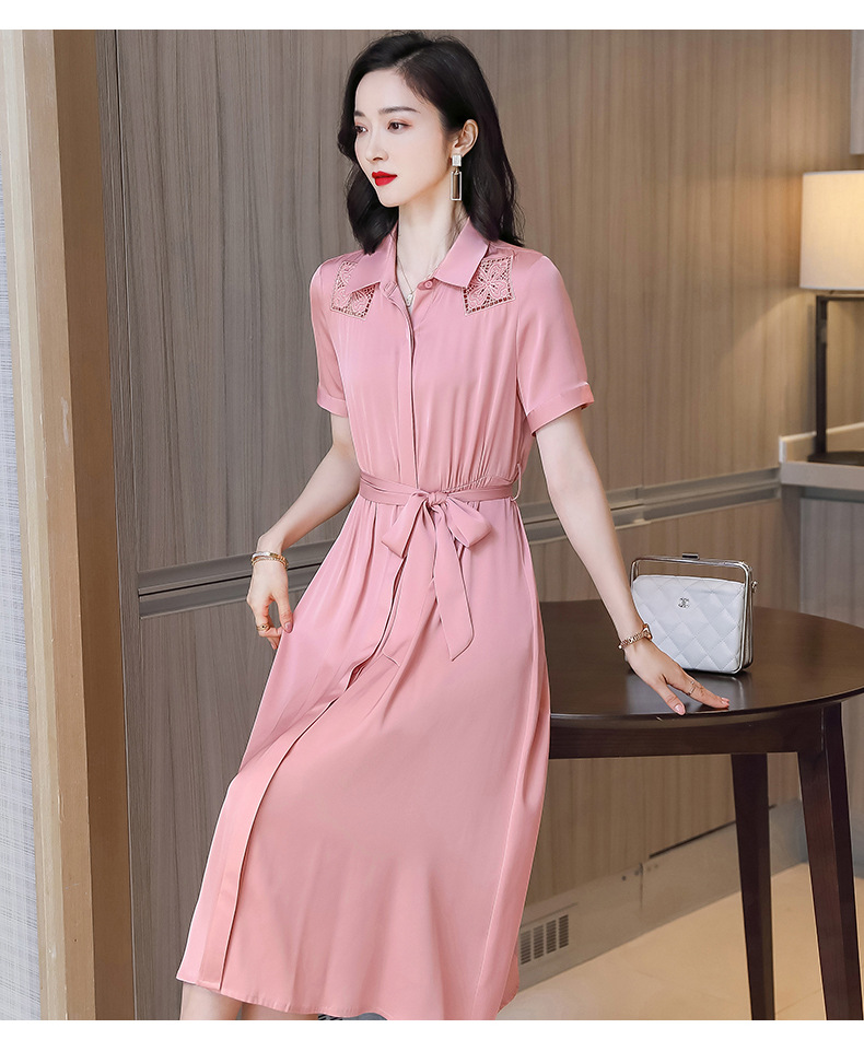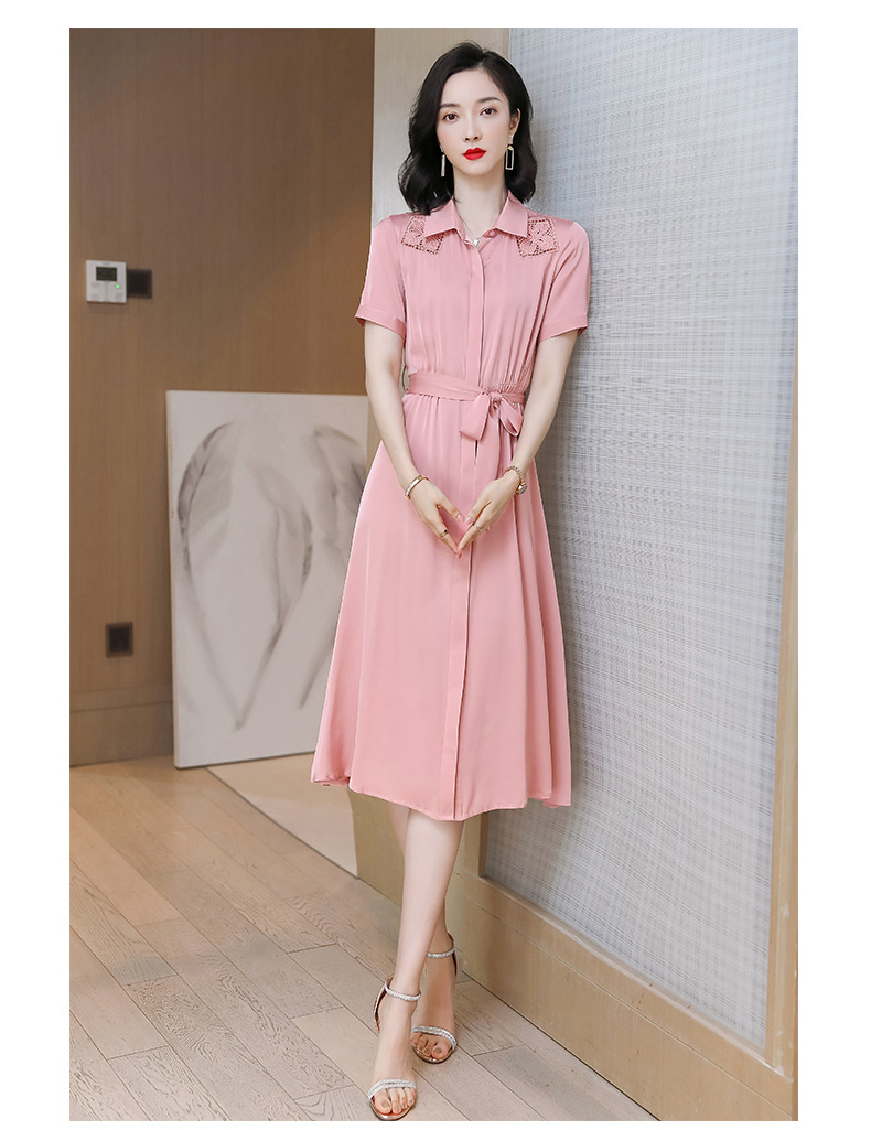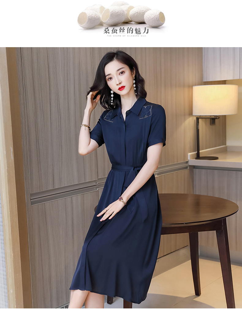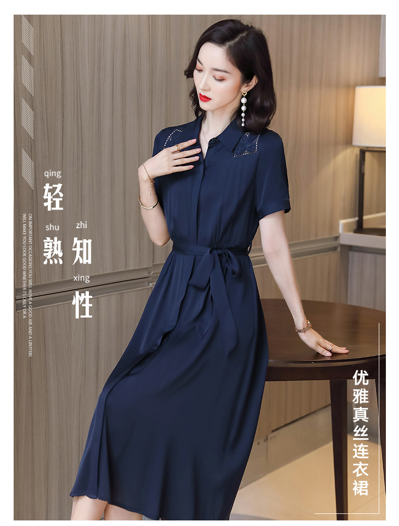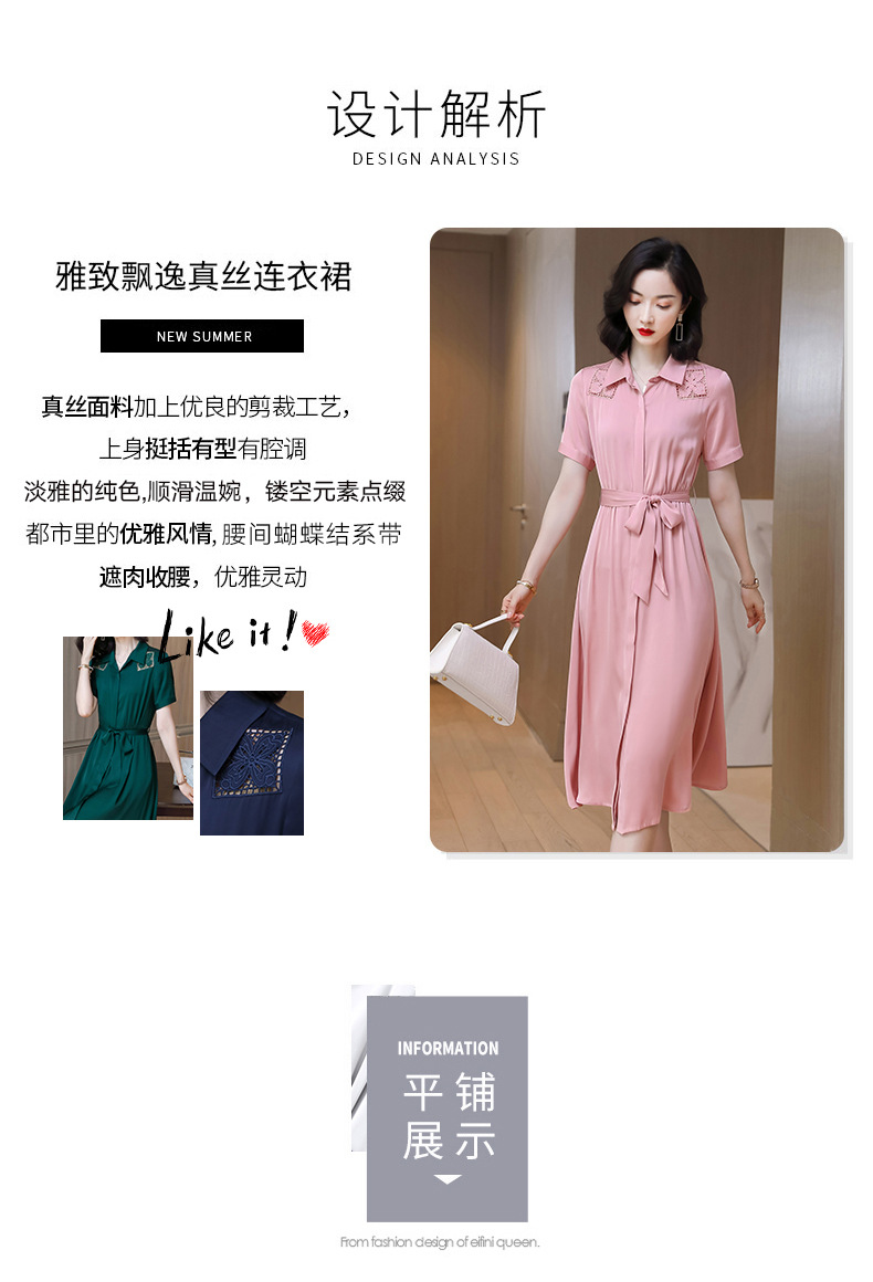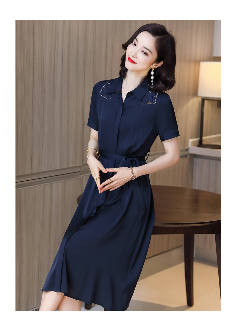 桑蚕丝衬衫裙,刺绣镂空真丝连衣裙 ASE-9118