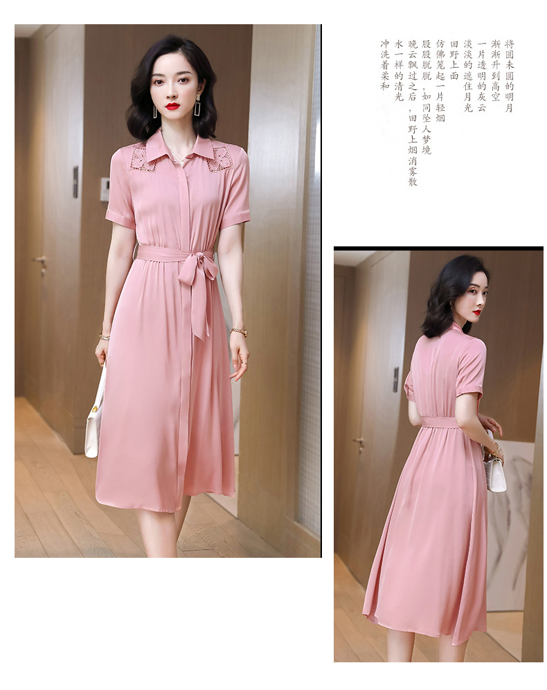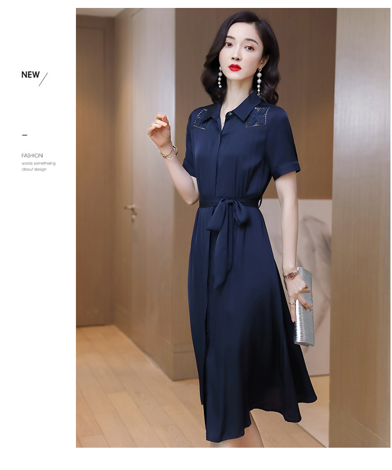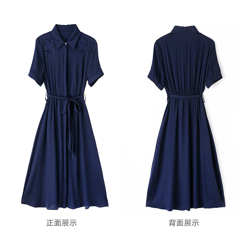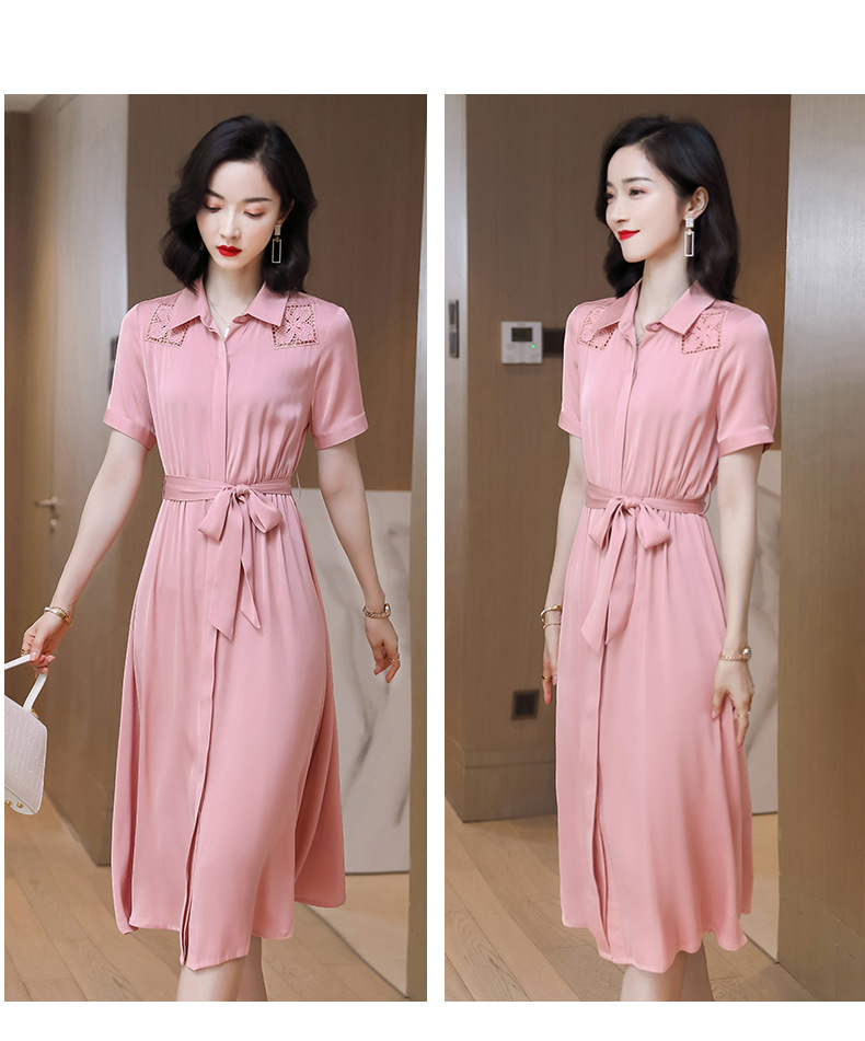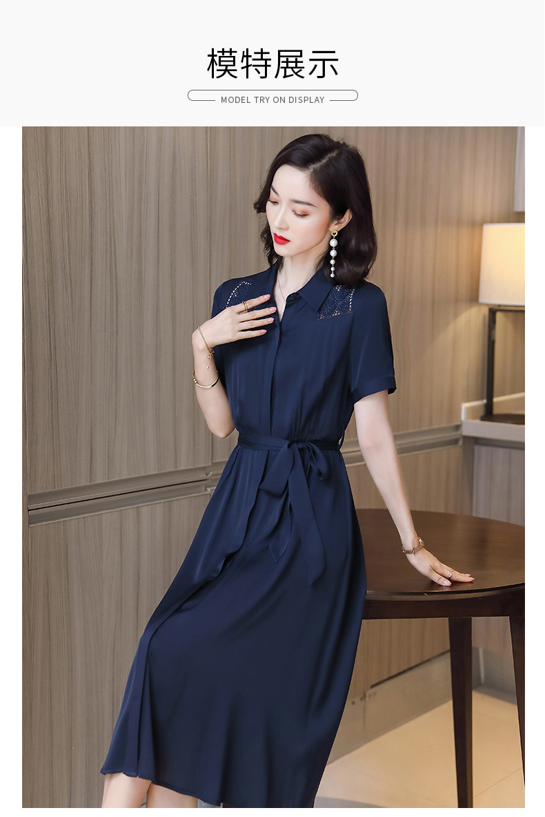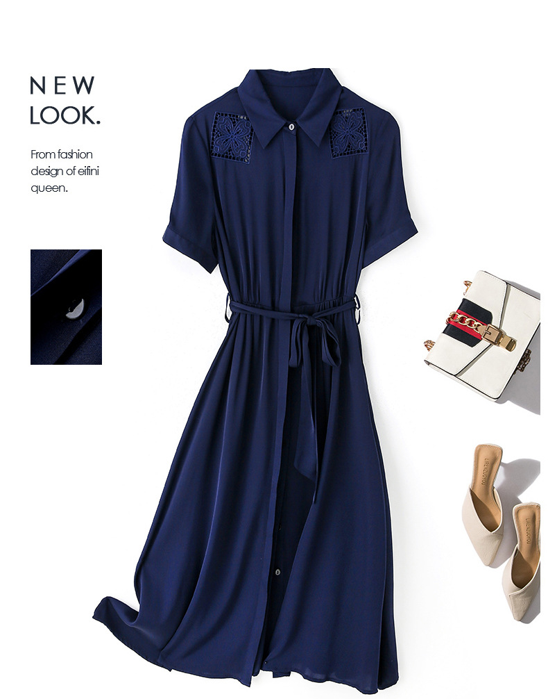 桑蚕丝衬衫裙,刺绣镂空真丝连衣裙 ASE-9118