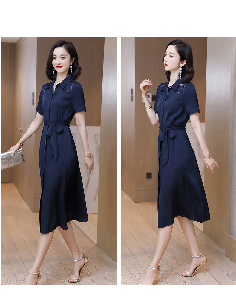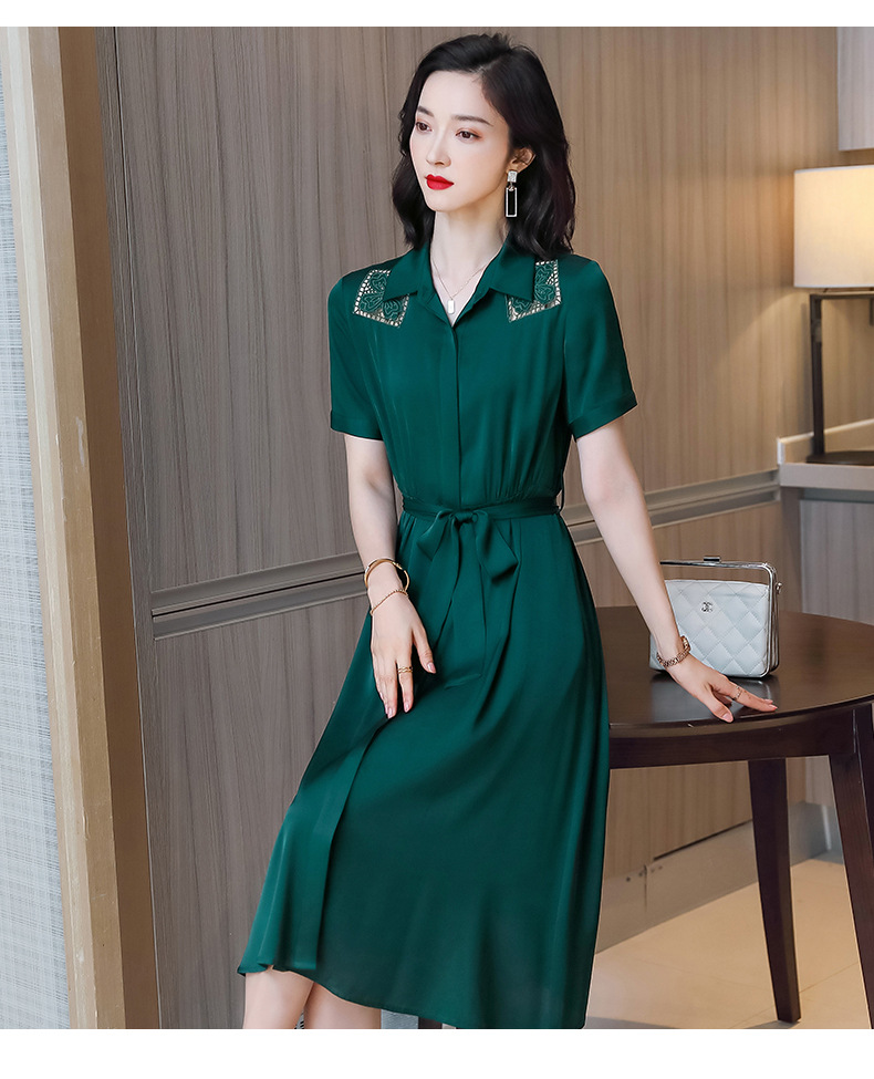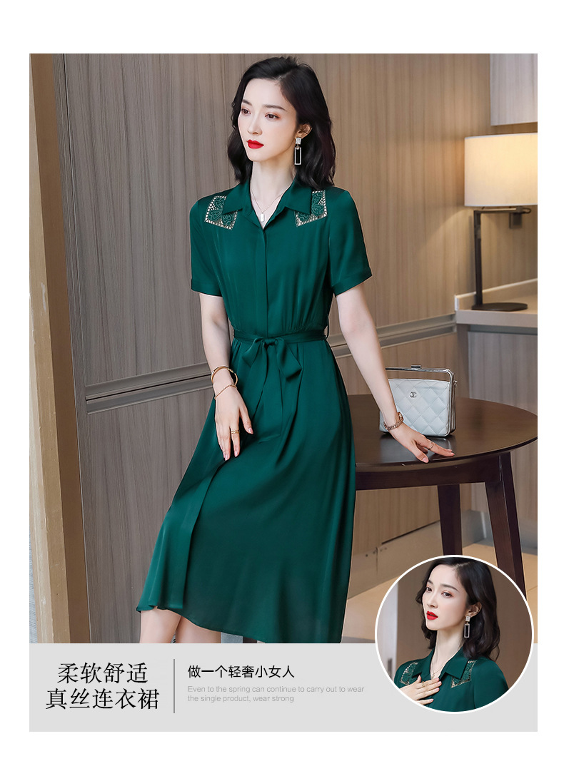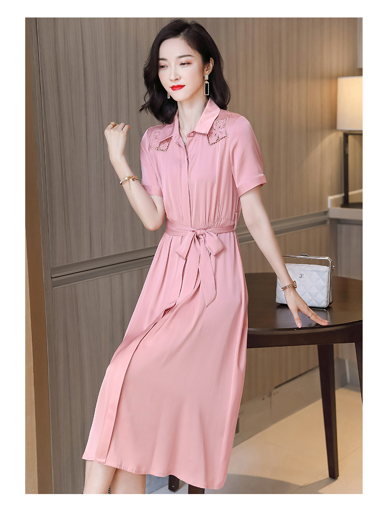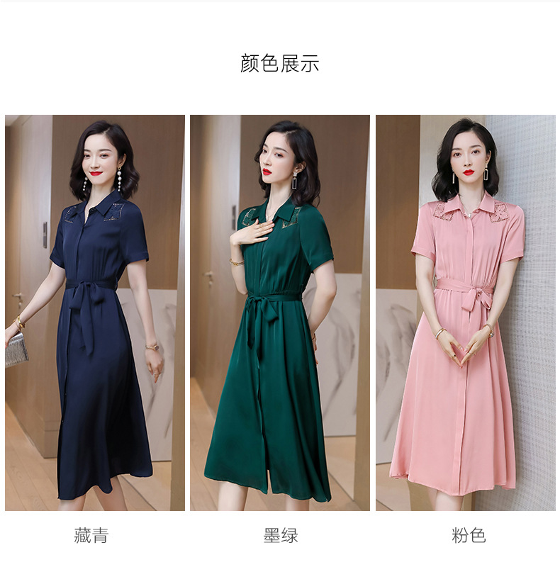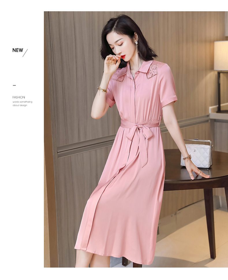 桑蚕丝衬衫裙,刺绣镂空真丝连衣裙 ASE-9118