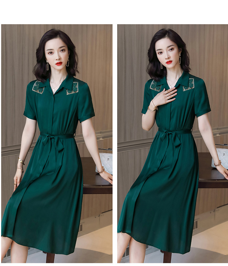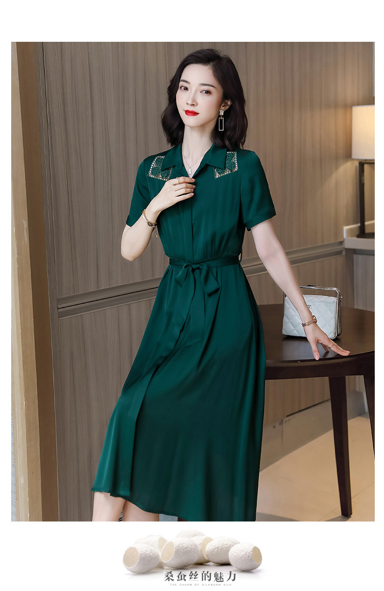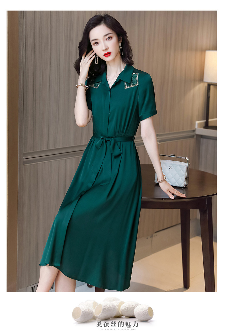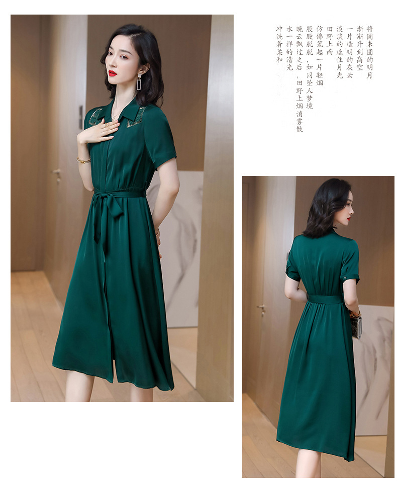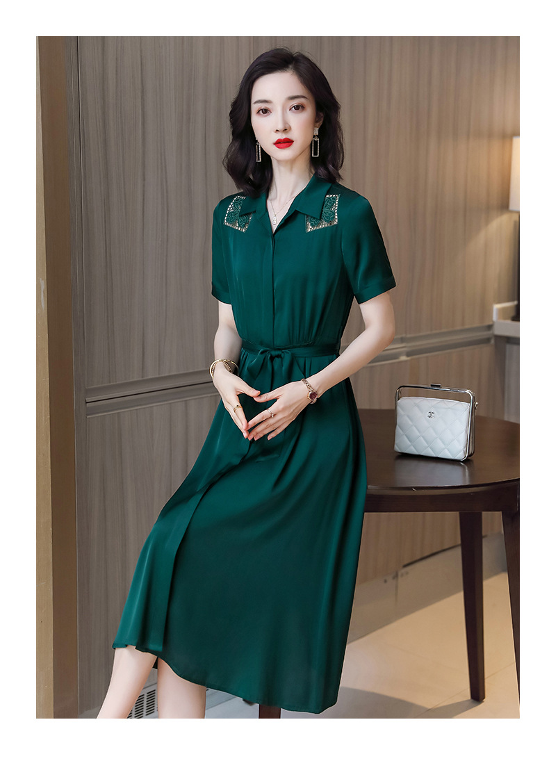 桑蚕丝衬衫裙,刺绣镂空真丝连衣裙 ASE-9118