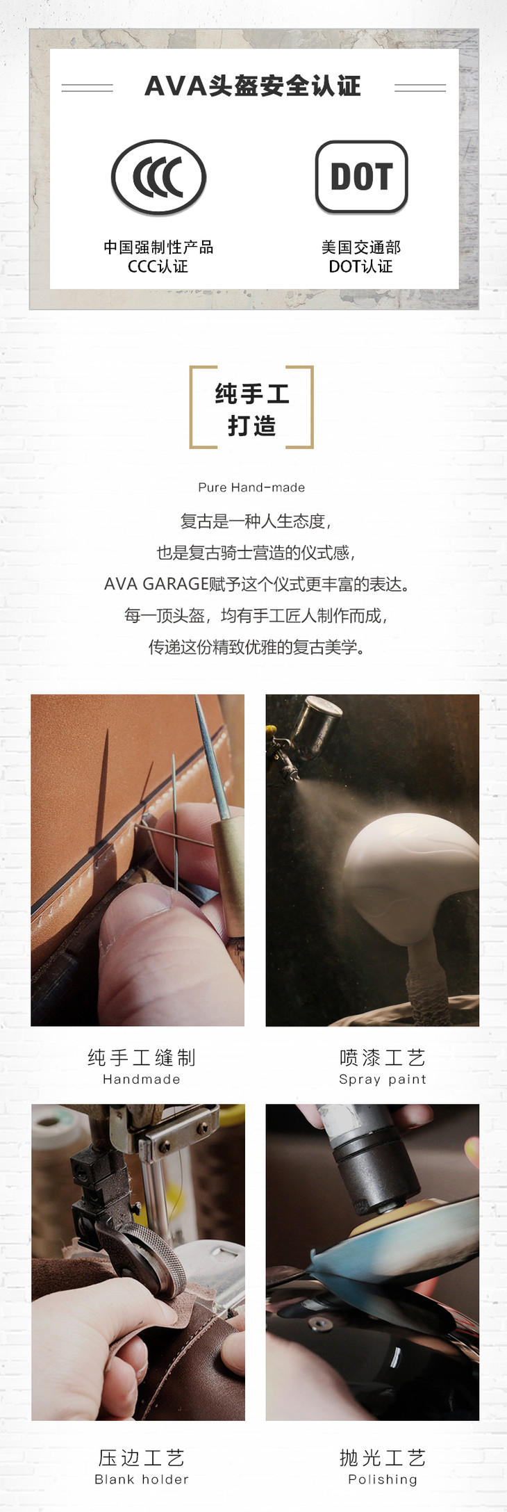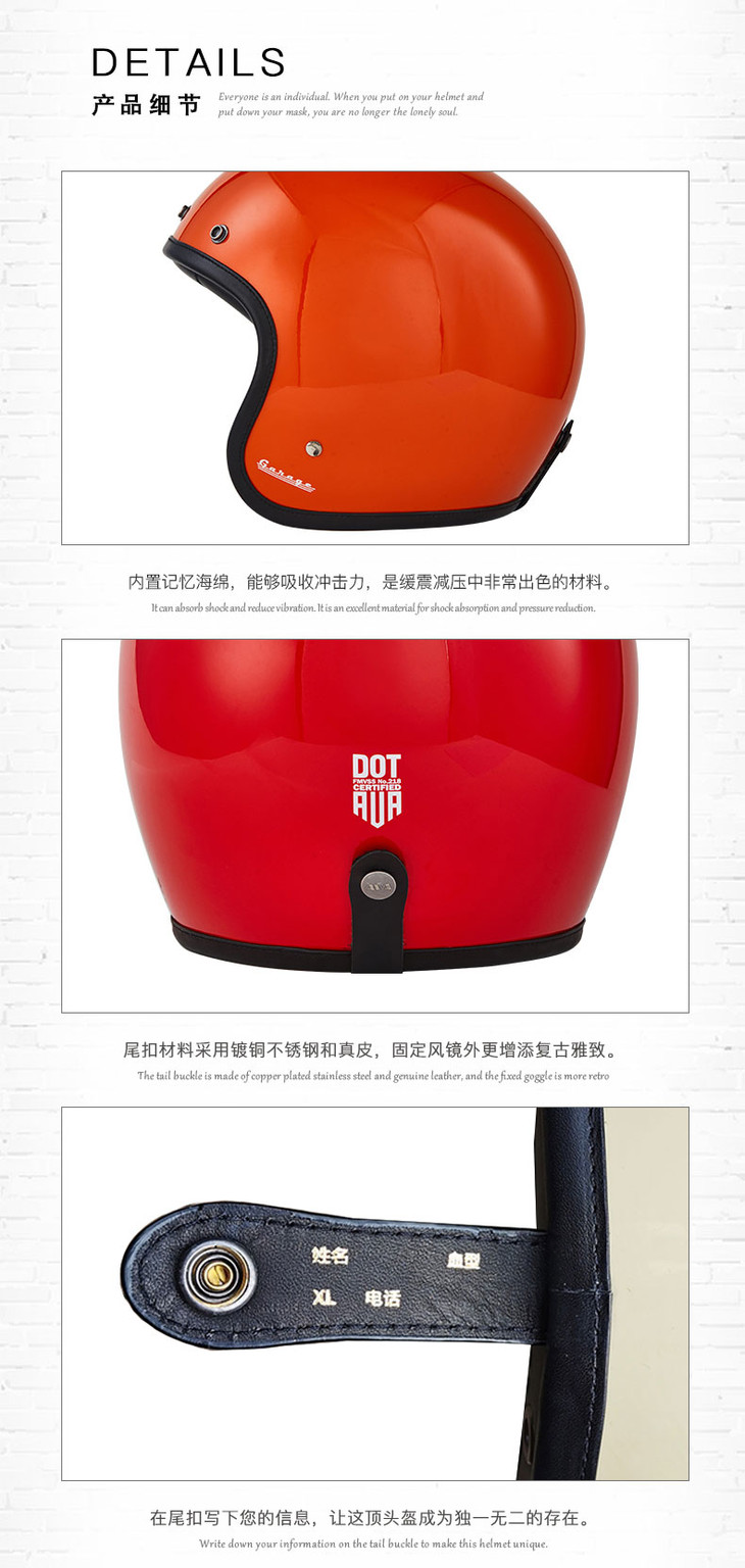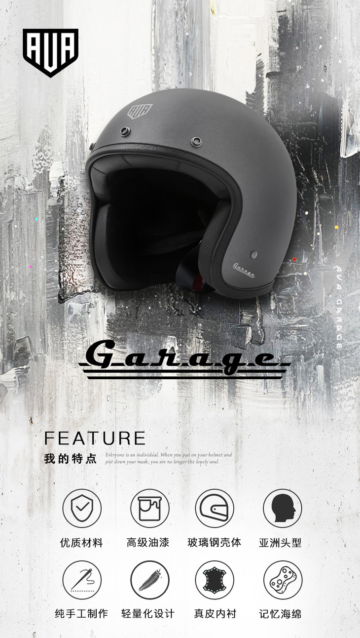 AVA GARAGE 复古哈雷头盔 男女玻璃钢半盔3/4盔