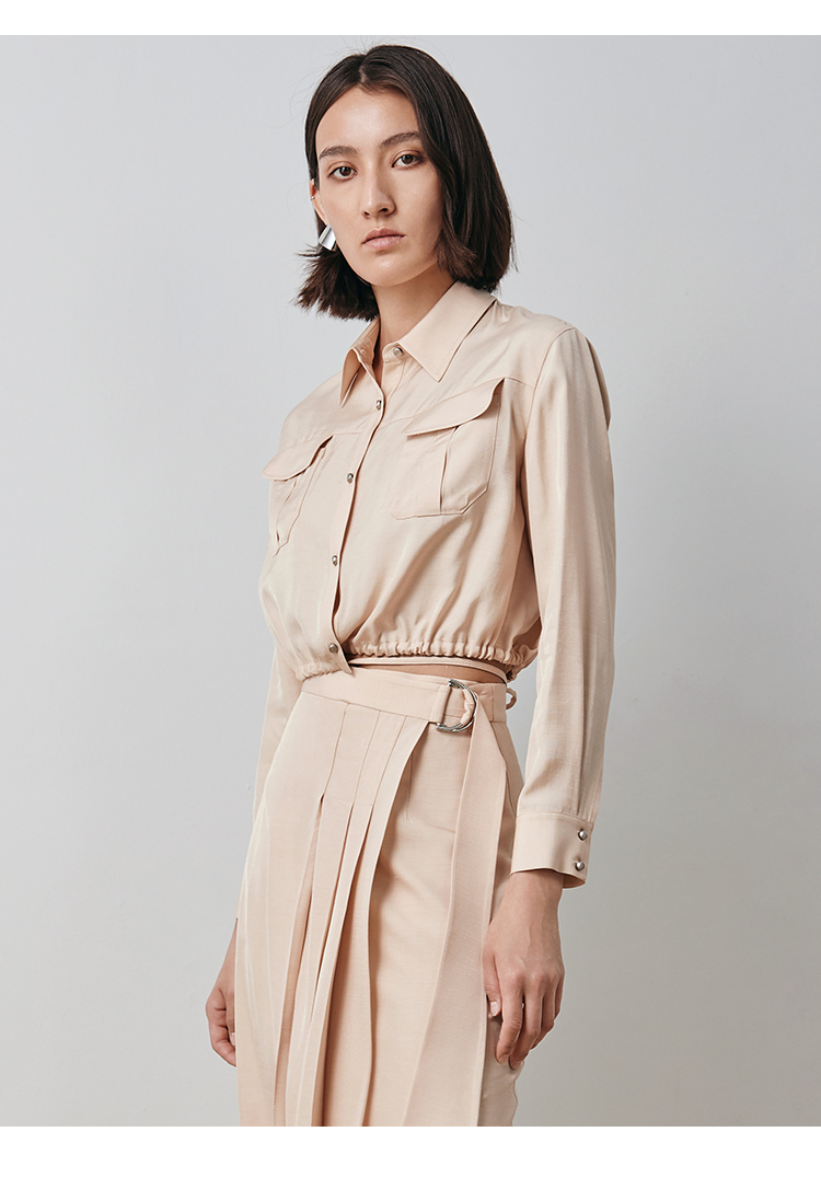 VIMAGE纬漫纪秋季新款时尚小众设计短款衬衫女上衣衬衣V2009606