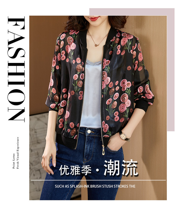 KQL A56N610雪纺防晒衣外套时尚印花开衫棒球服