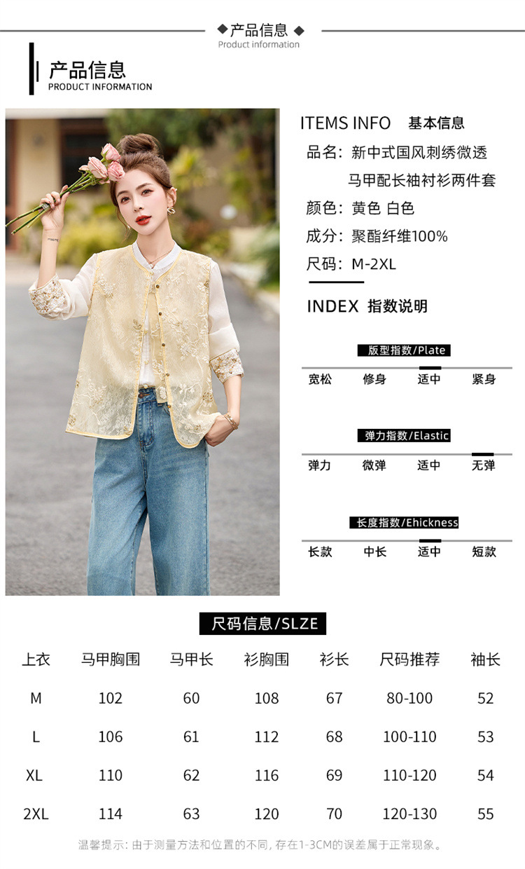 HR CPYY8125新中式国风刺绣微透马甲配长袖衬衫两件套 商品图0