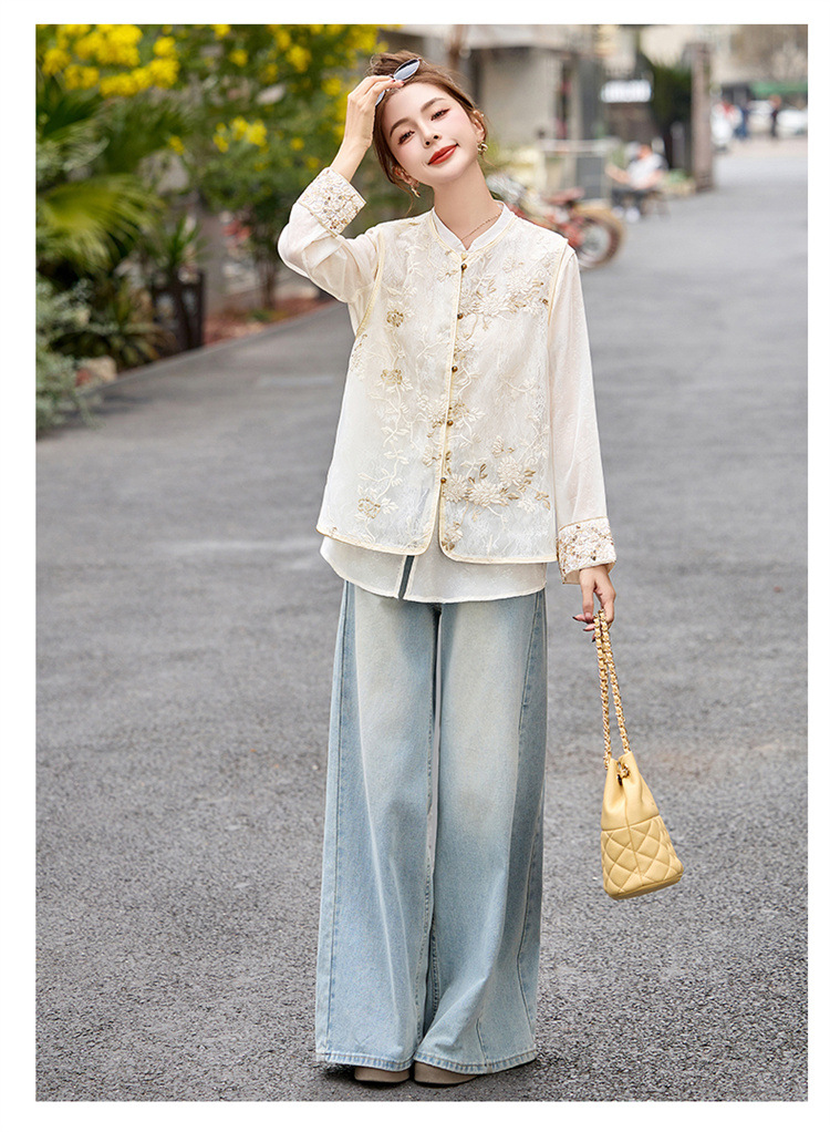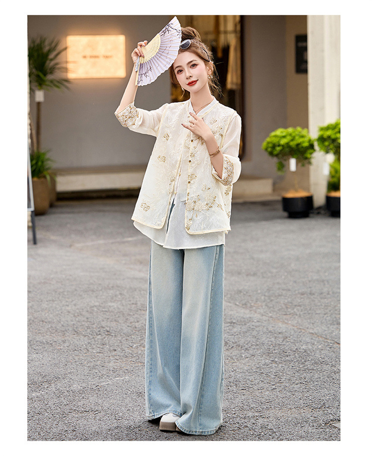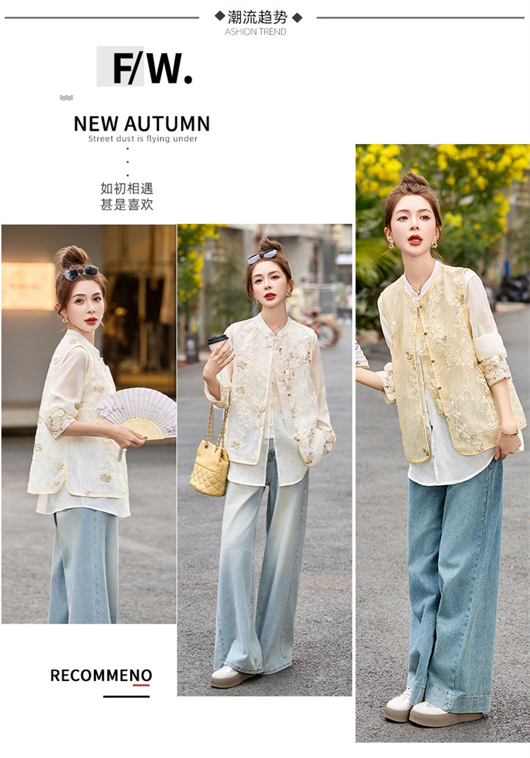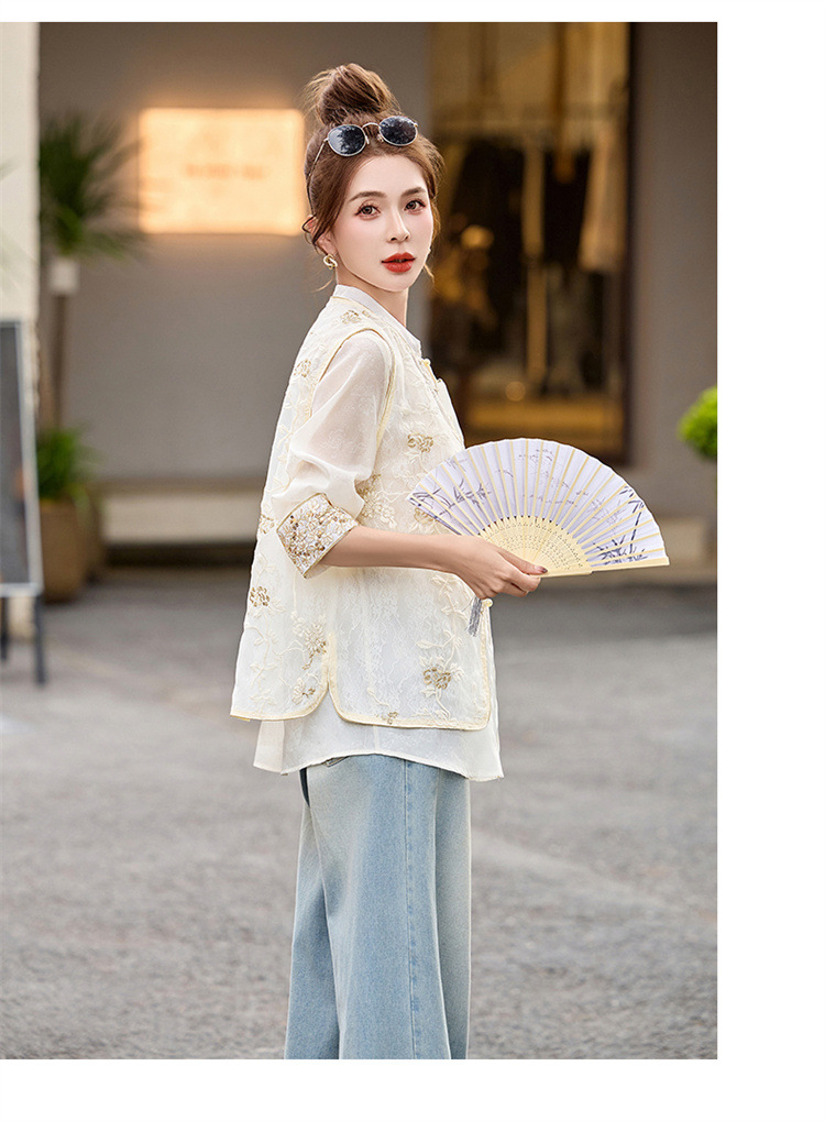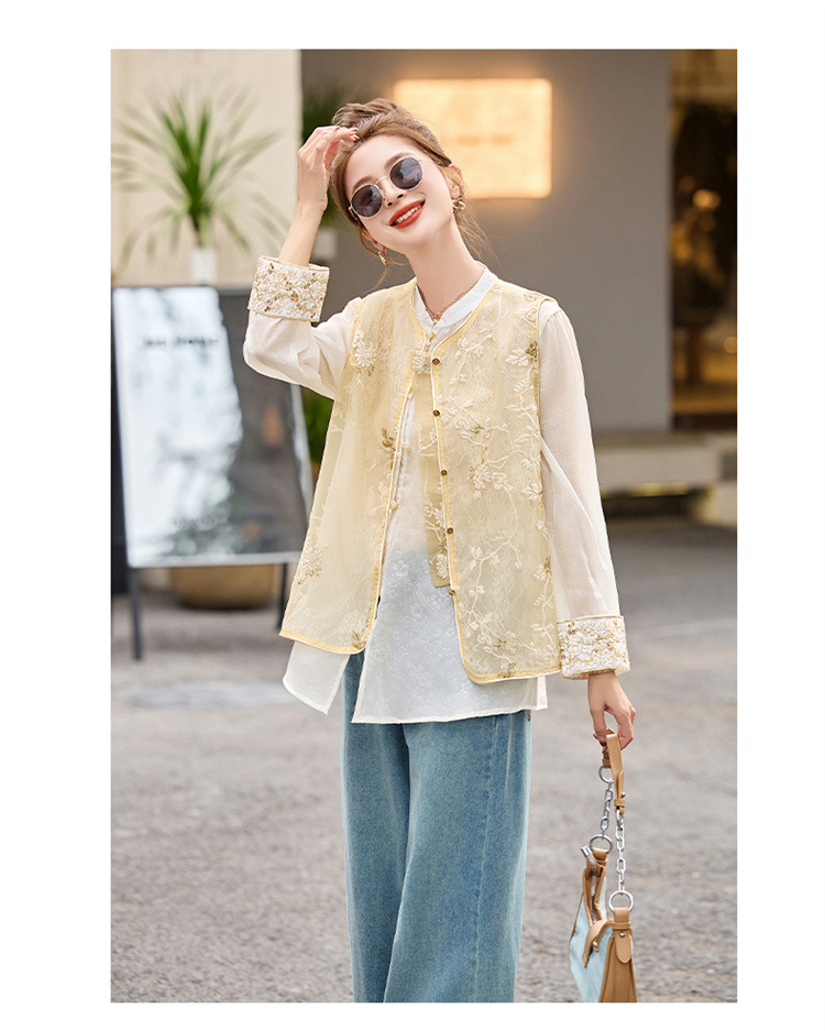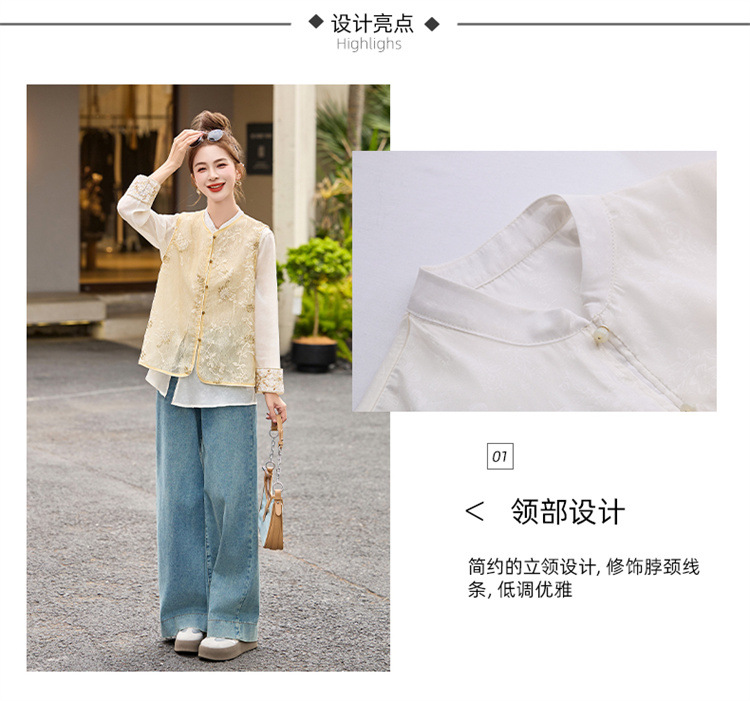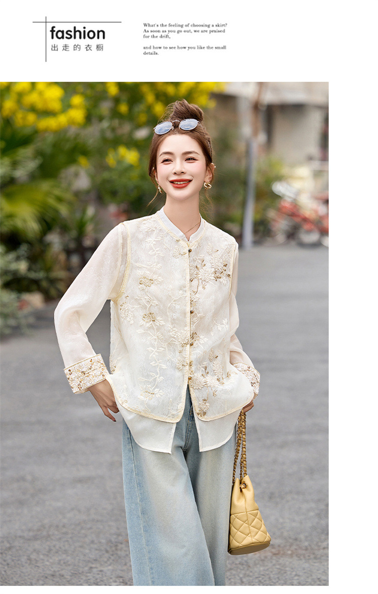 HR CPYY8125新中式国风刺绣微透马甲配长袖衬衫两件套 商品图3