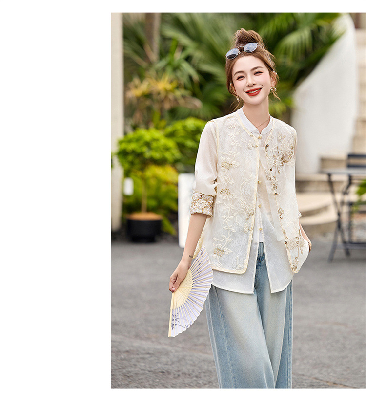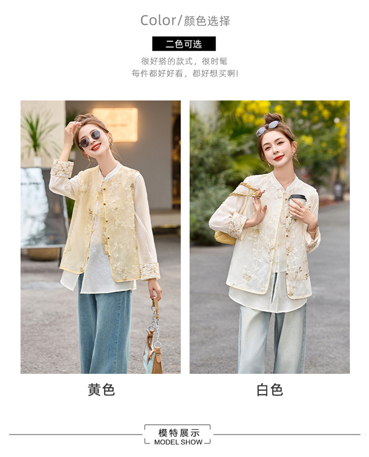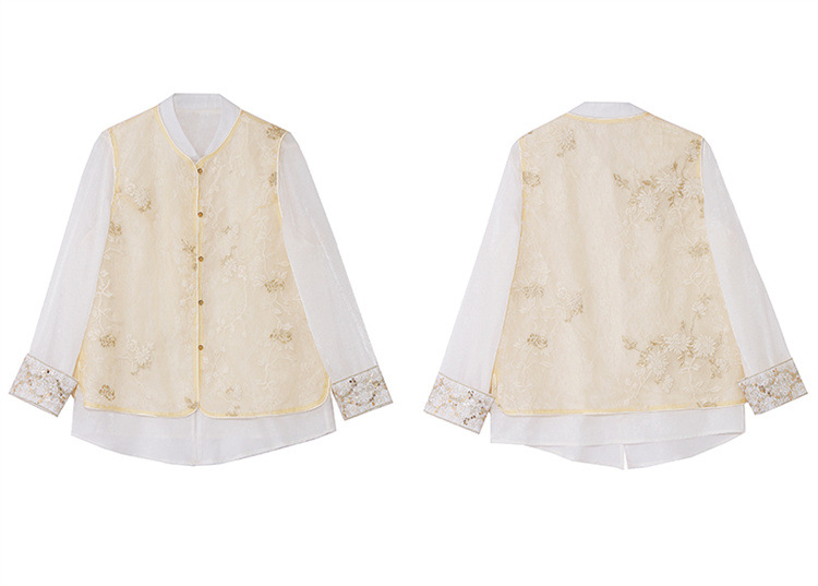 HR CPYY8125新中式国风刺绣微透马甲配长袖衬衫两件套 商品图2
