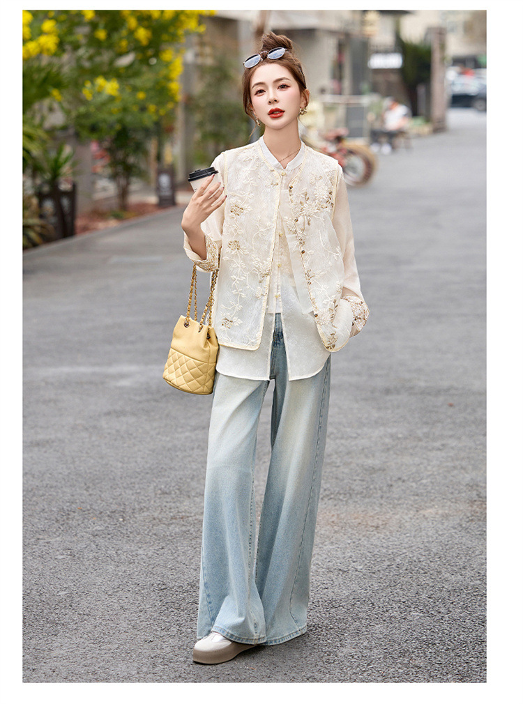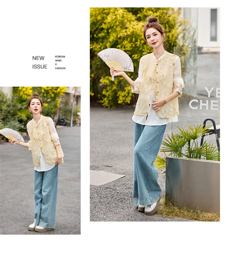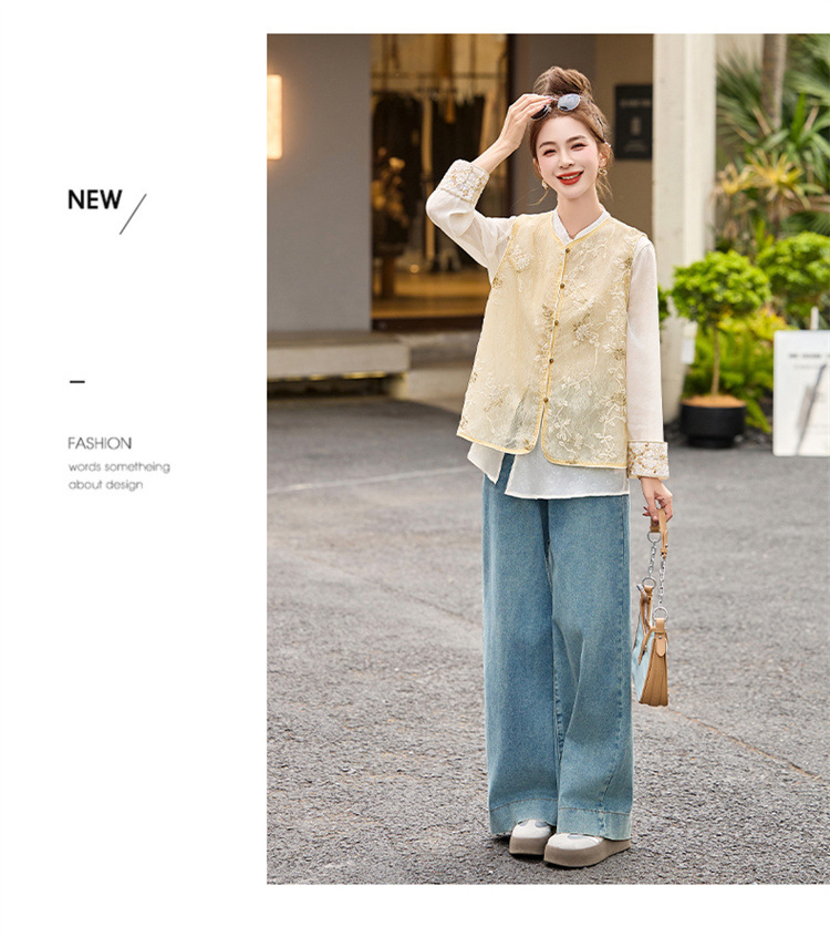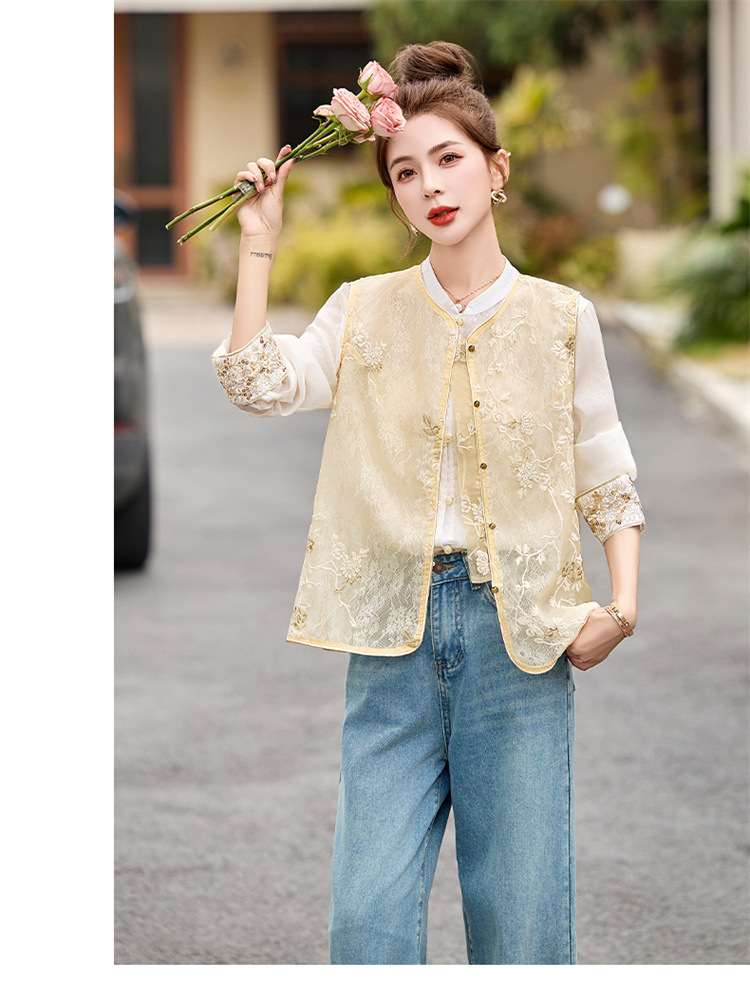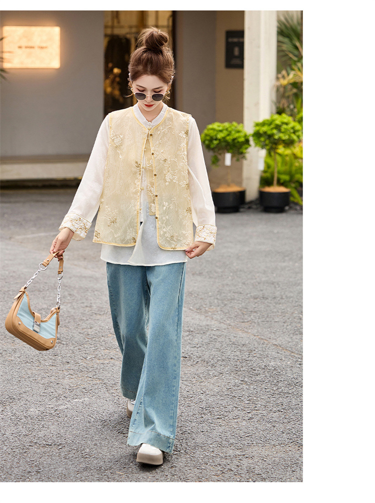 HR CPYY8125新中式国风刺绣微透马甲配长袖衬衫两件套