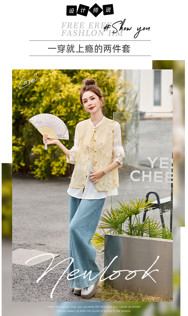 HR CPYY8125新中式国风刺绣微透马甲配长袖衬衫两件套 商品图1