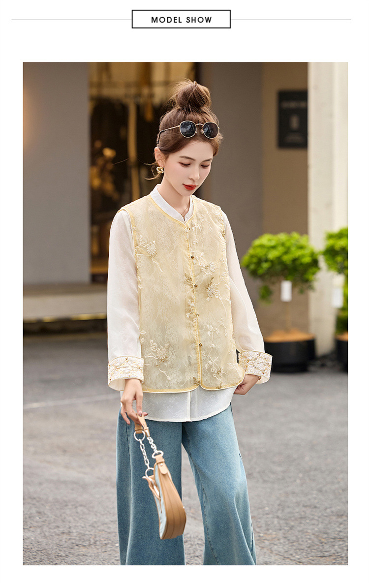 HR CPYY8125新中式国风刺绣微透马甲配长袖衬衫两件套 商品图4