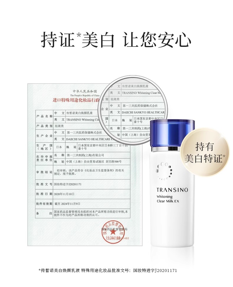 【品牌直发】日本TRANSINO传皙诺美白祛斑焕颜水乳