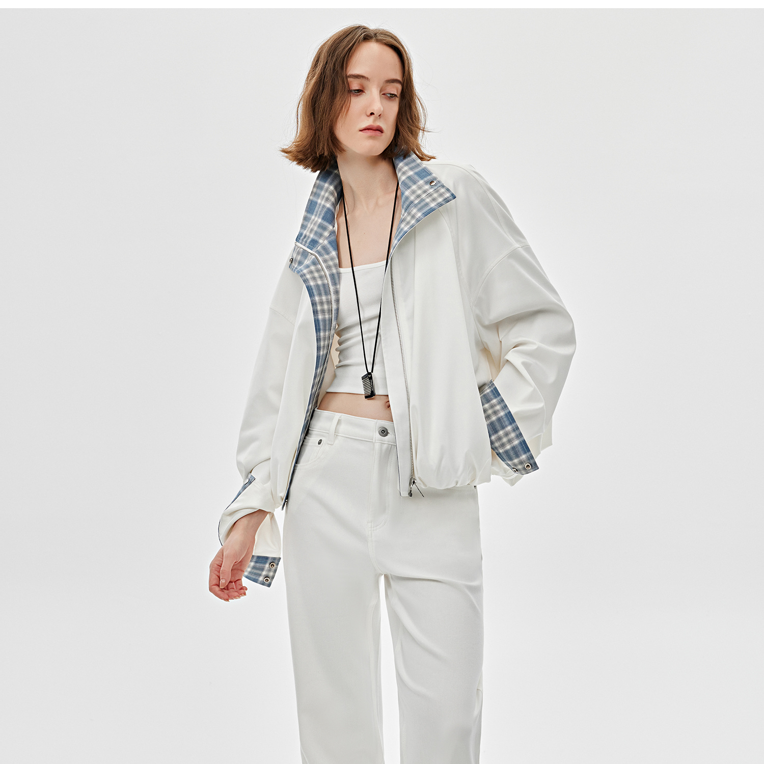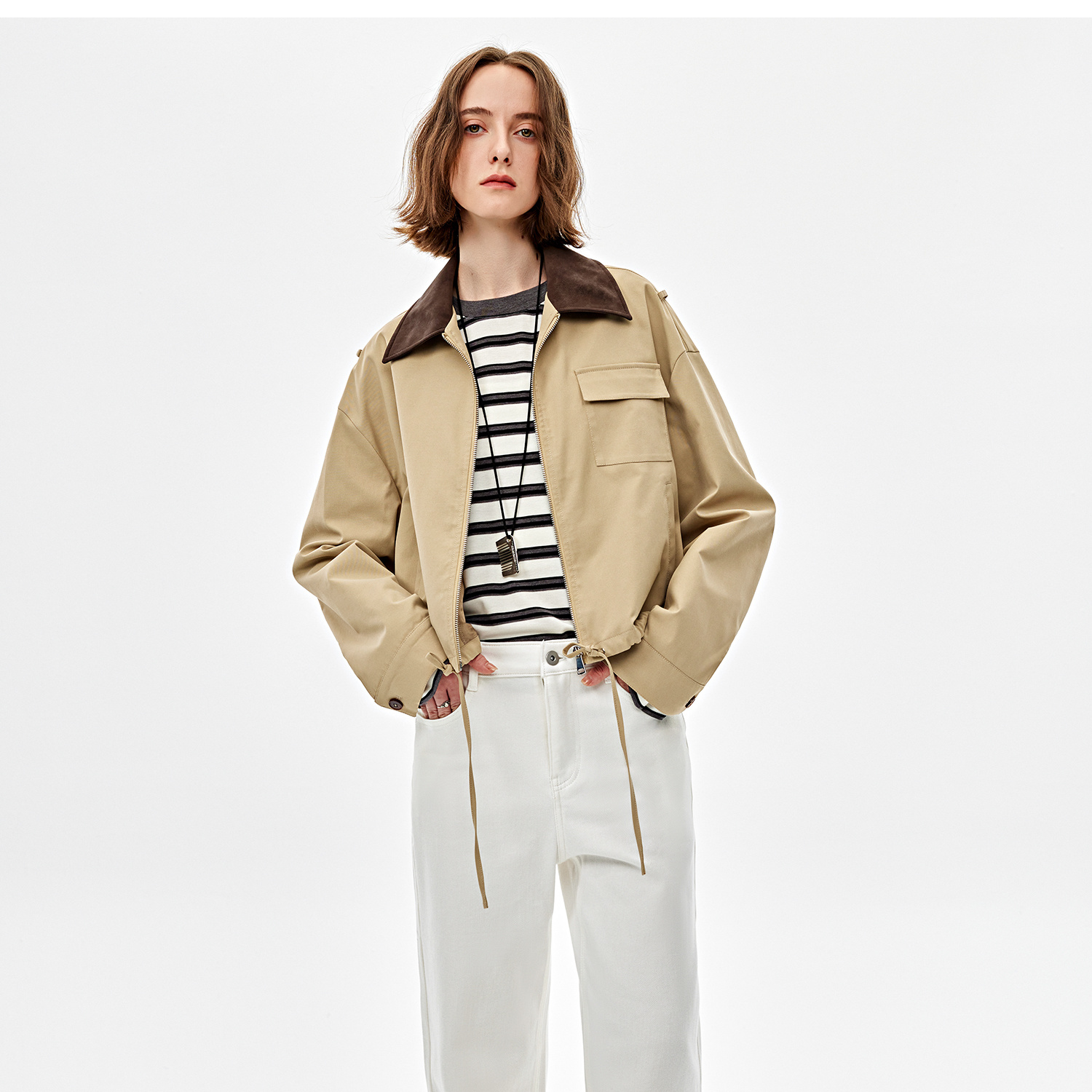 复古Vintage原白宽松休闲薯条牛仔裤2025春新KZ2501042