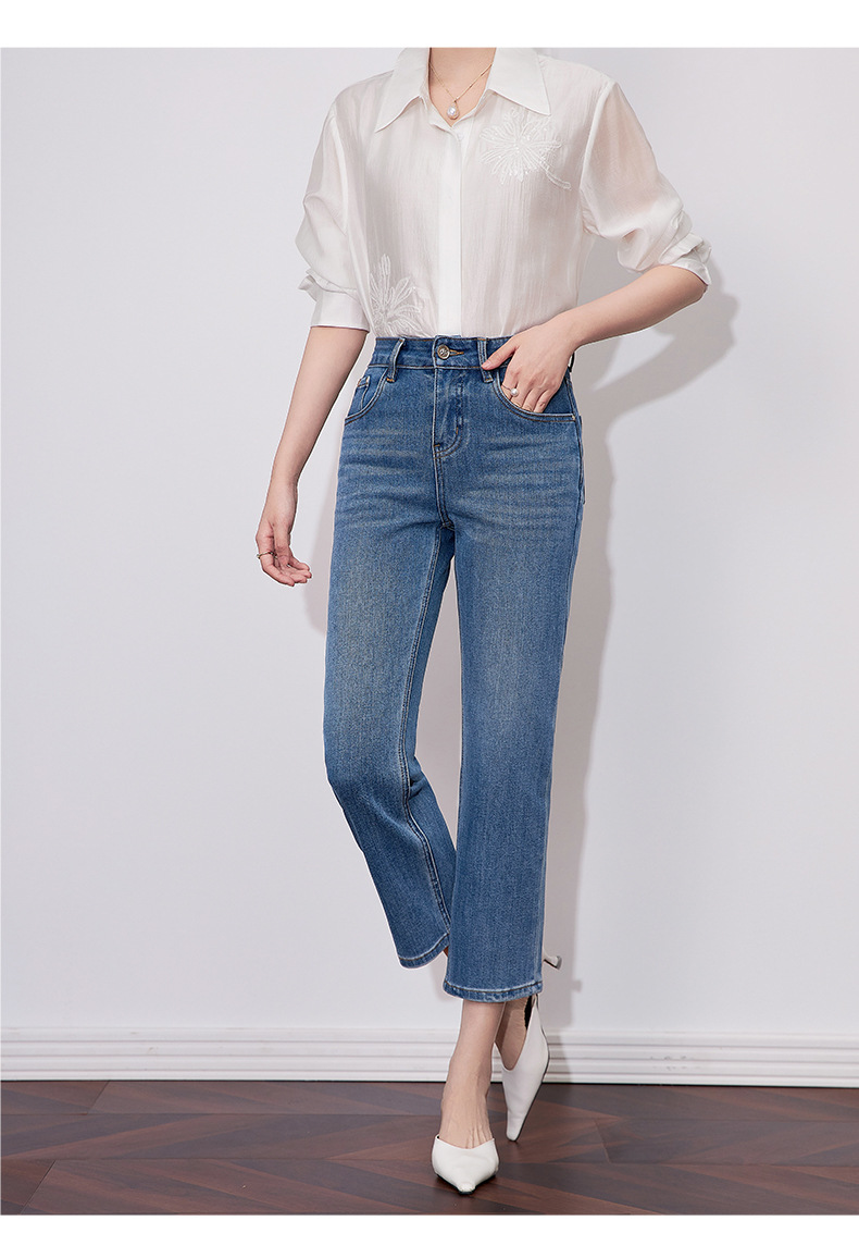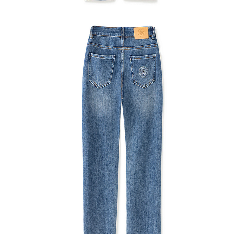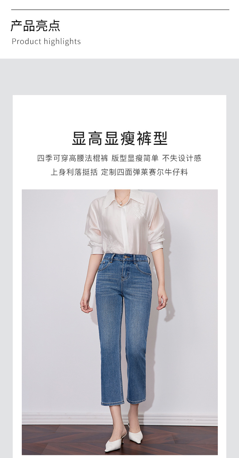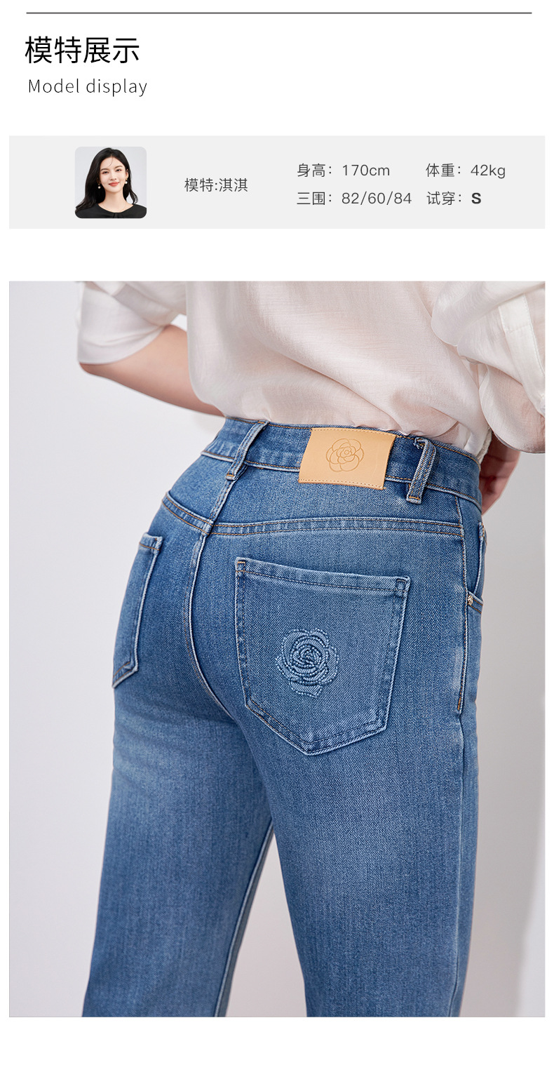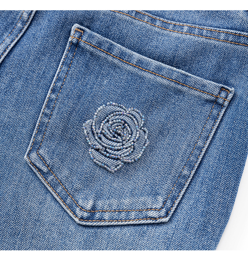 【高货wl】全新升级【铂金会员257/天猫339/差价82】(15627) 洛诗琳早春时尚休闲四面弹高腰玫瑰钉珠绣九分裤牛仔裤女