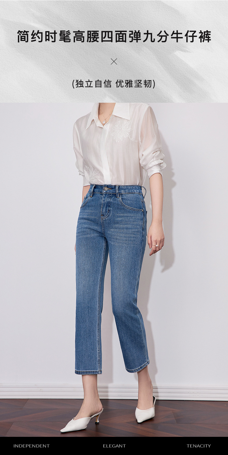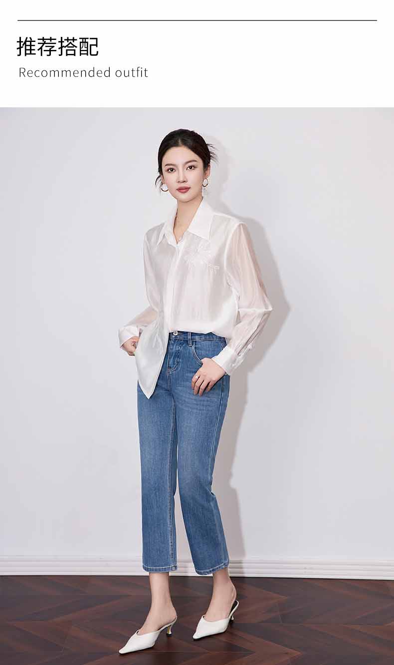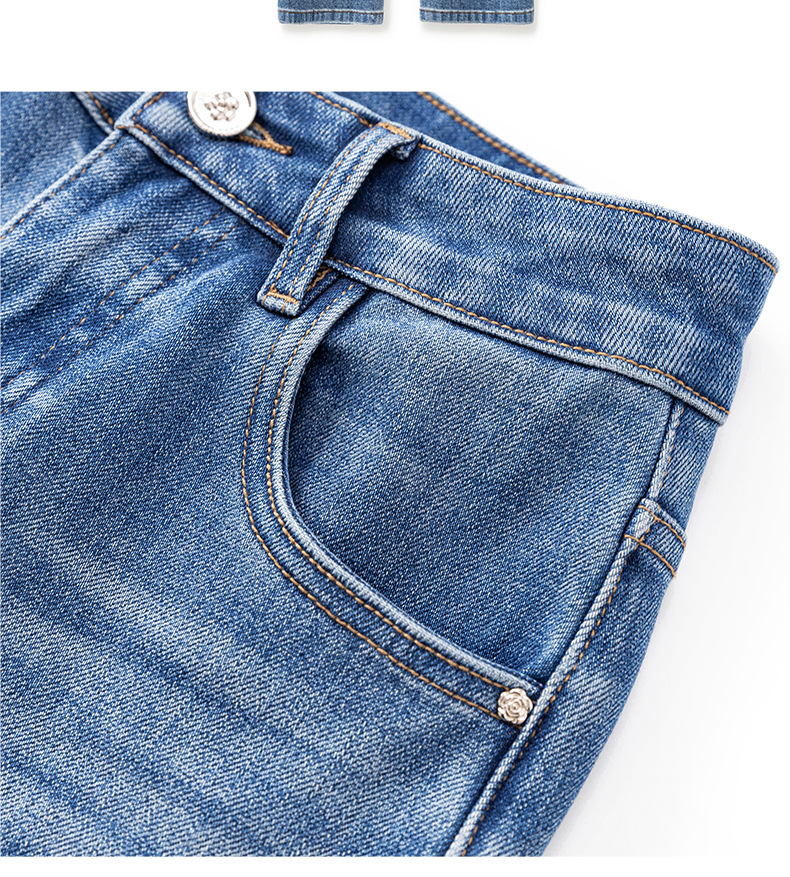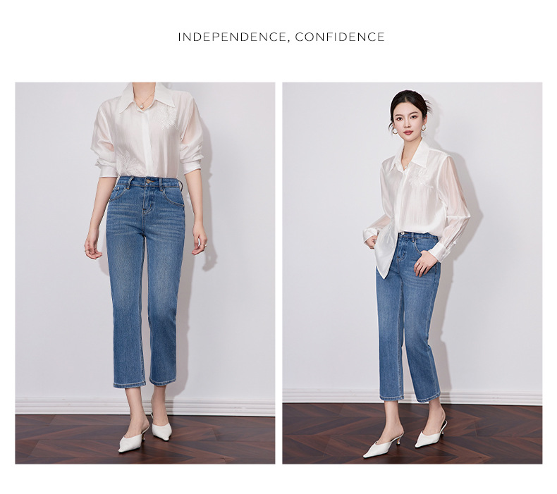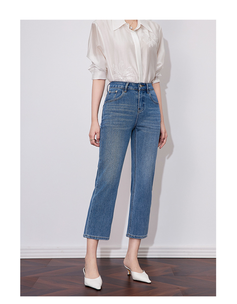 【高货wl】全新升级【铂金会员257/天猫339/差价82】(15627) 洛诗琳早春时尚休闲四面弹高腰玫瑰钉珠绣九分裤牛仔裤女