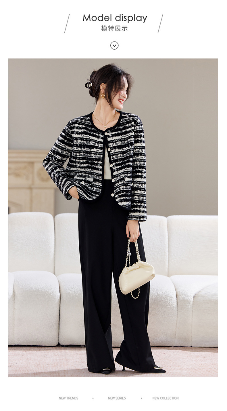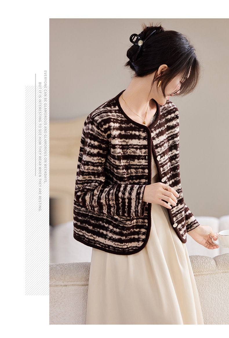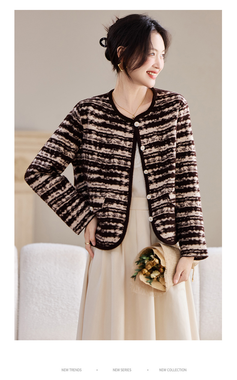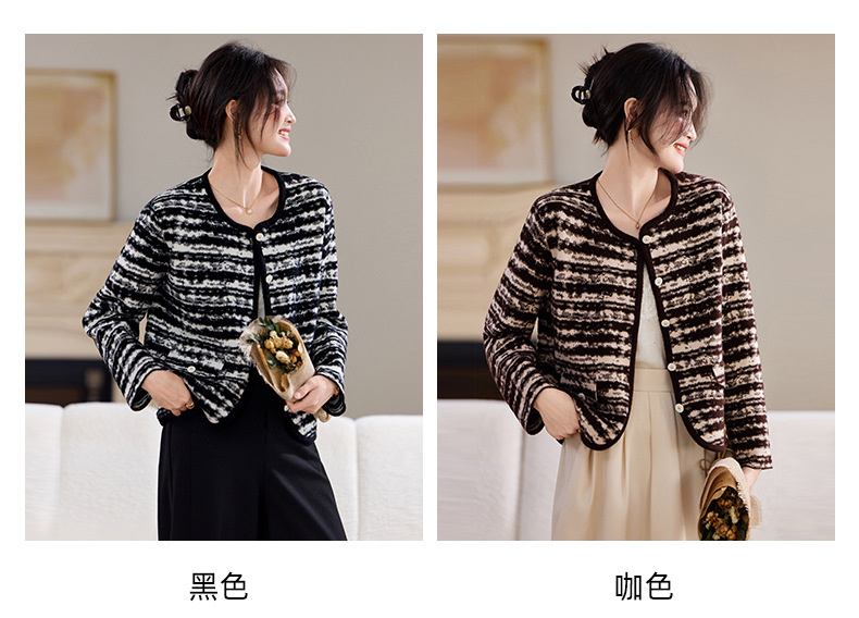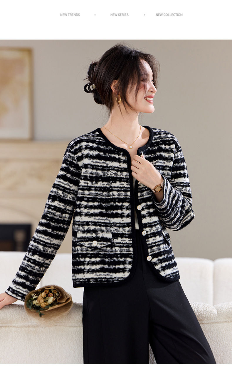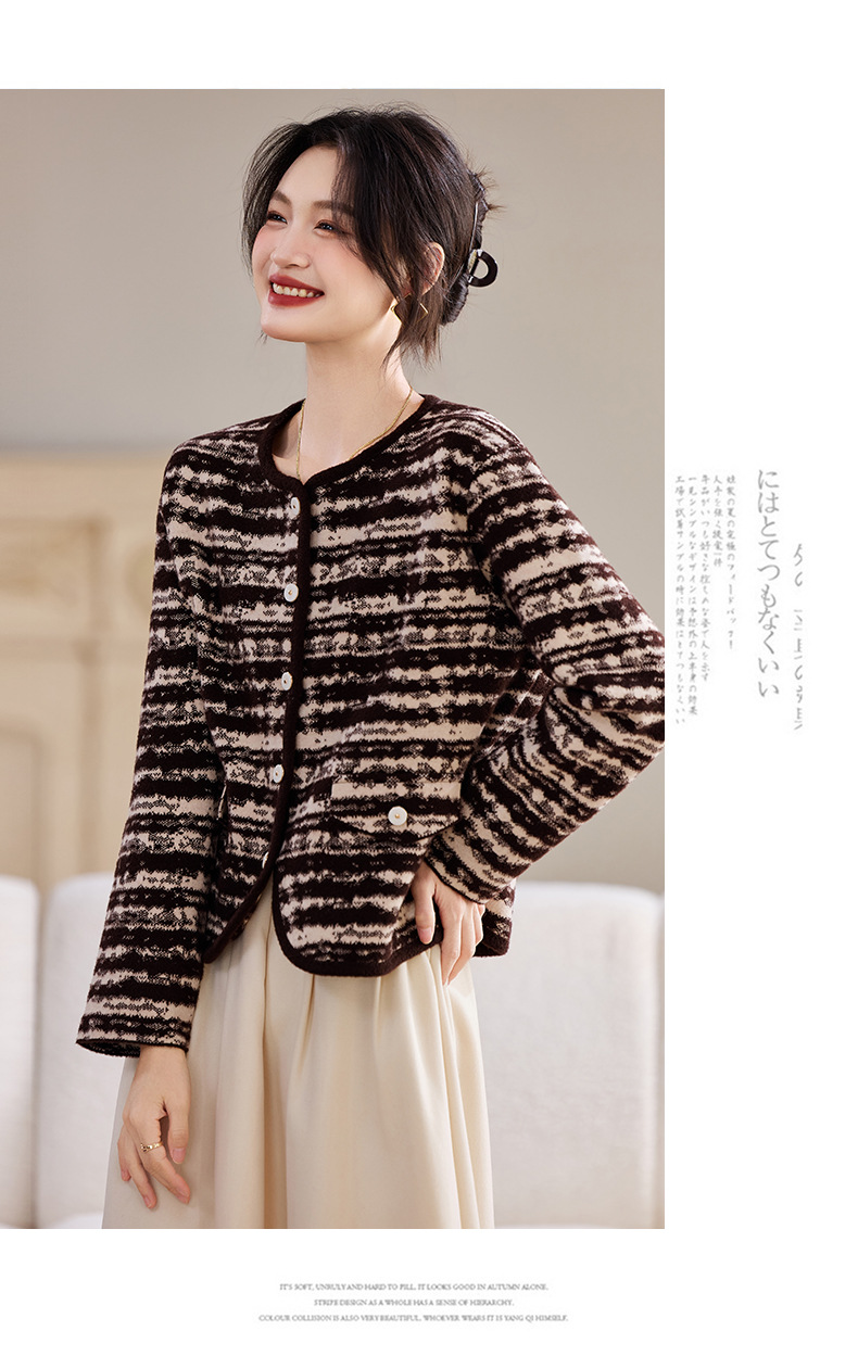 J6951 2025春秋新款小香风毛衣外套女短款圆领条纹显瘦针织开衫外搭上衣