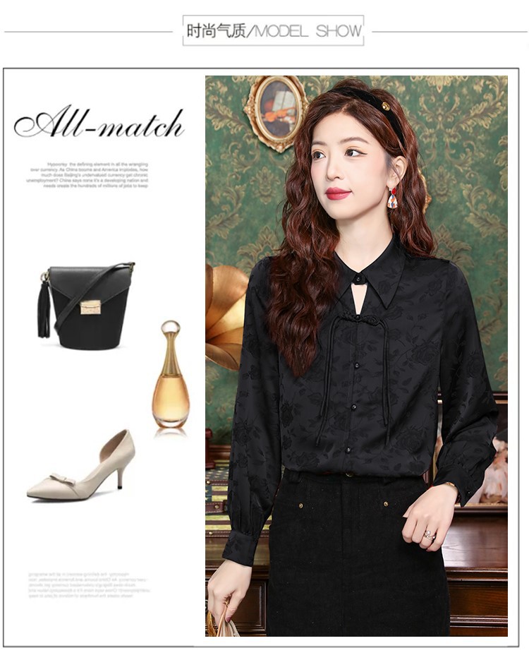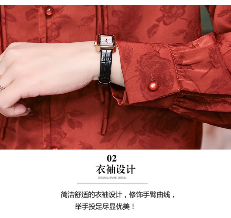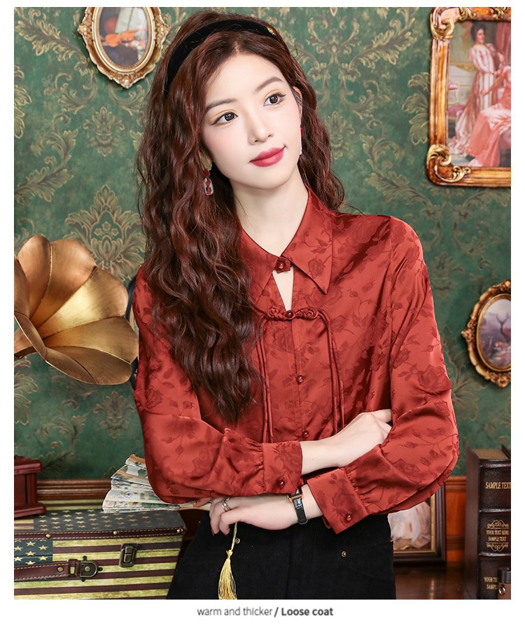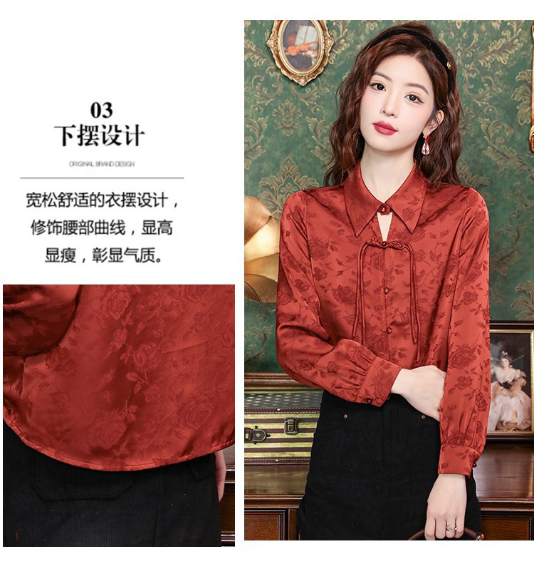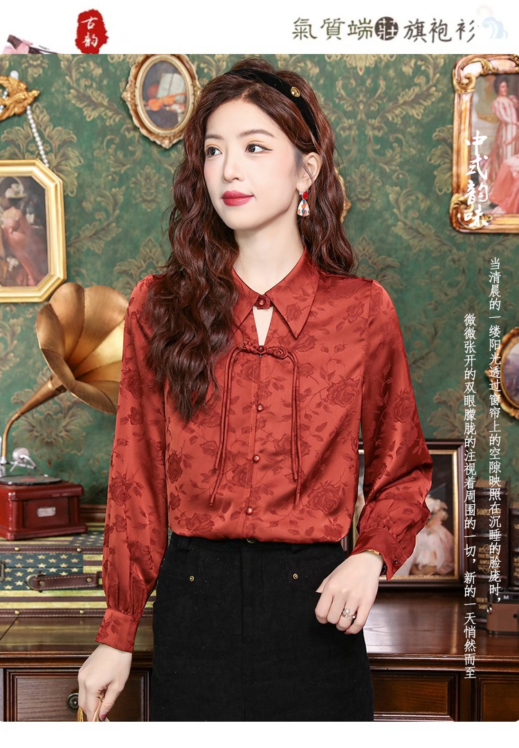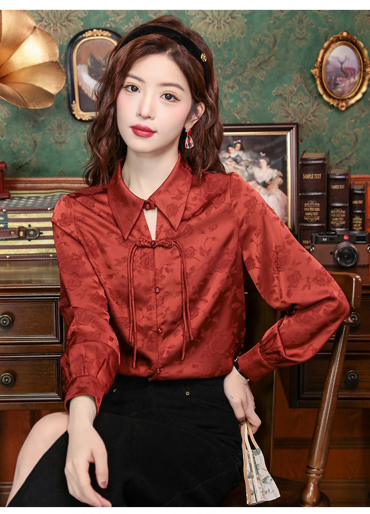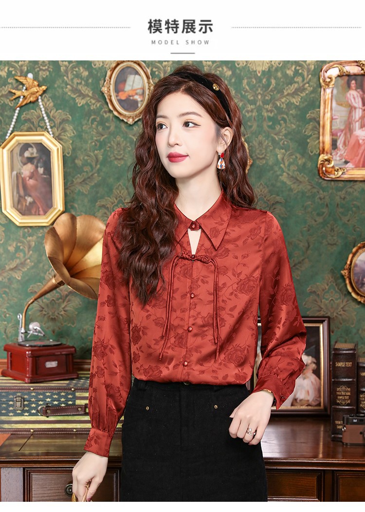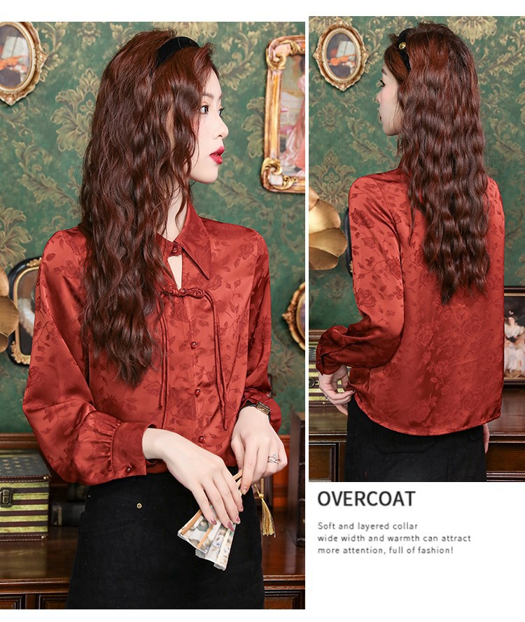 新中式国风红色雪纺衬衫女士春秋季新款时尚百搭气质小衫长袖衬衣
