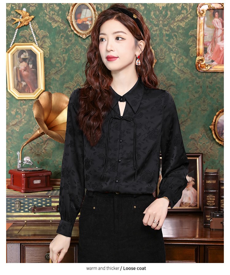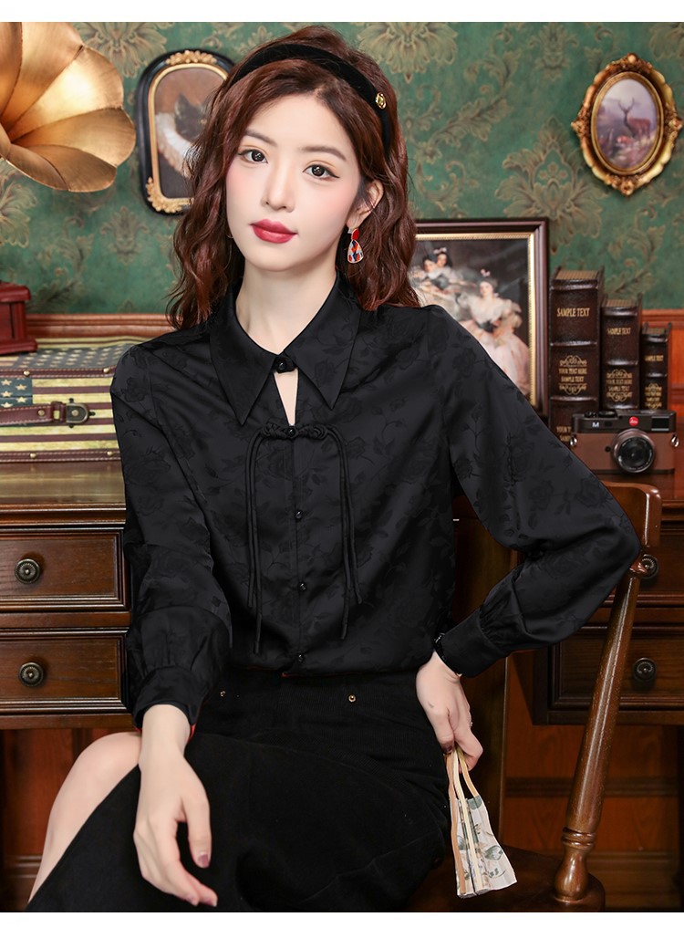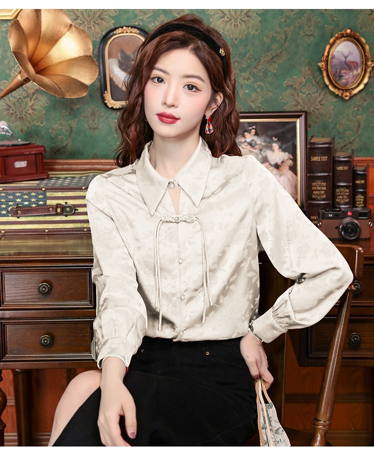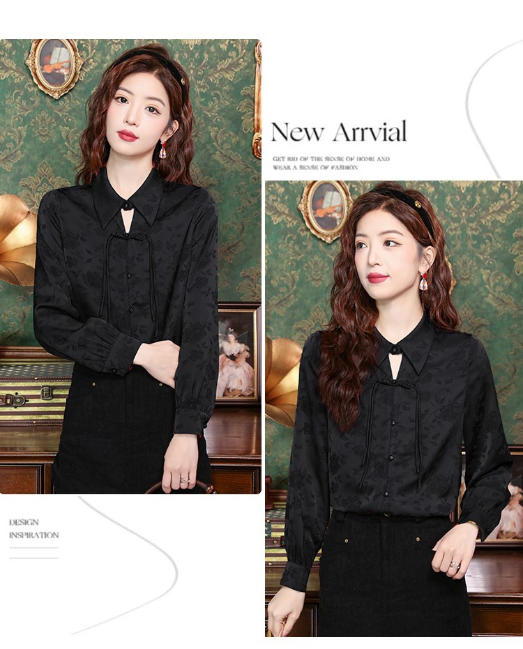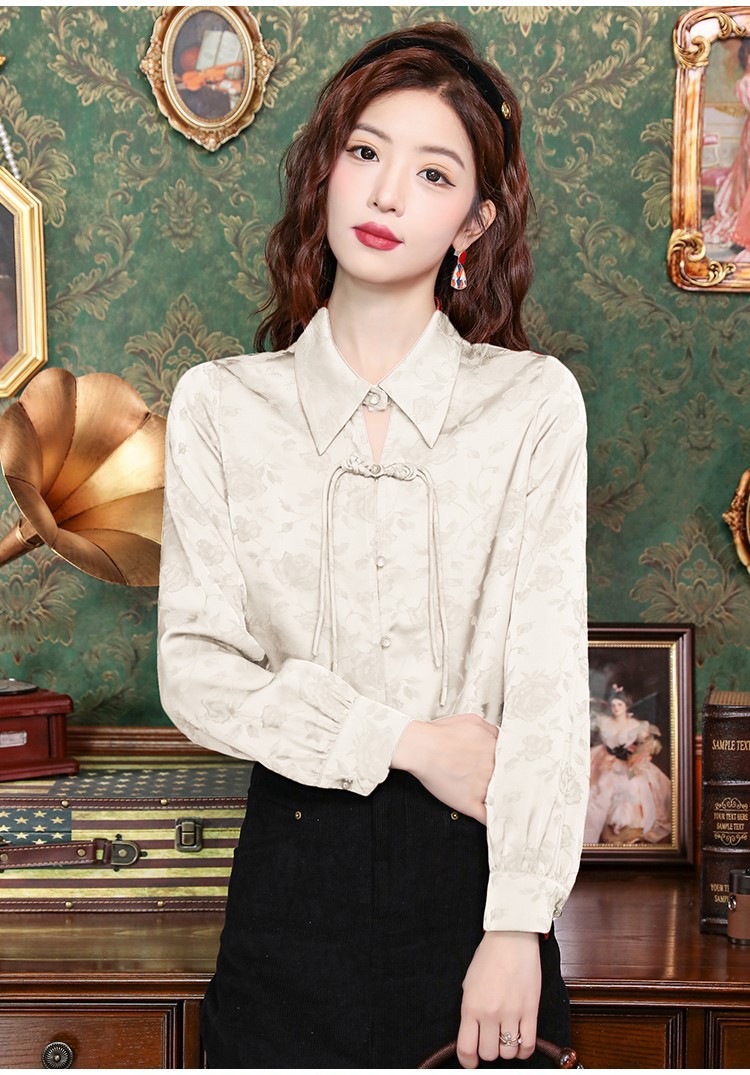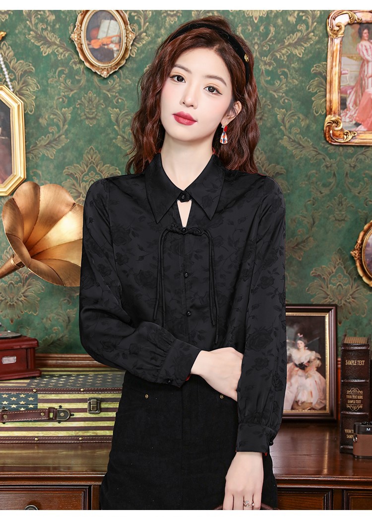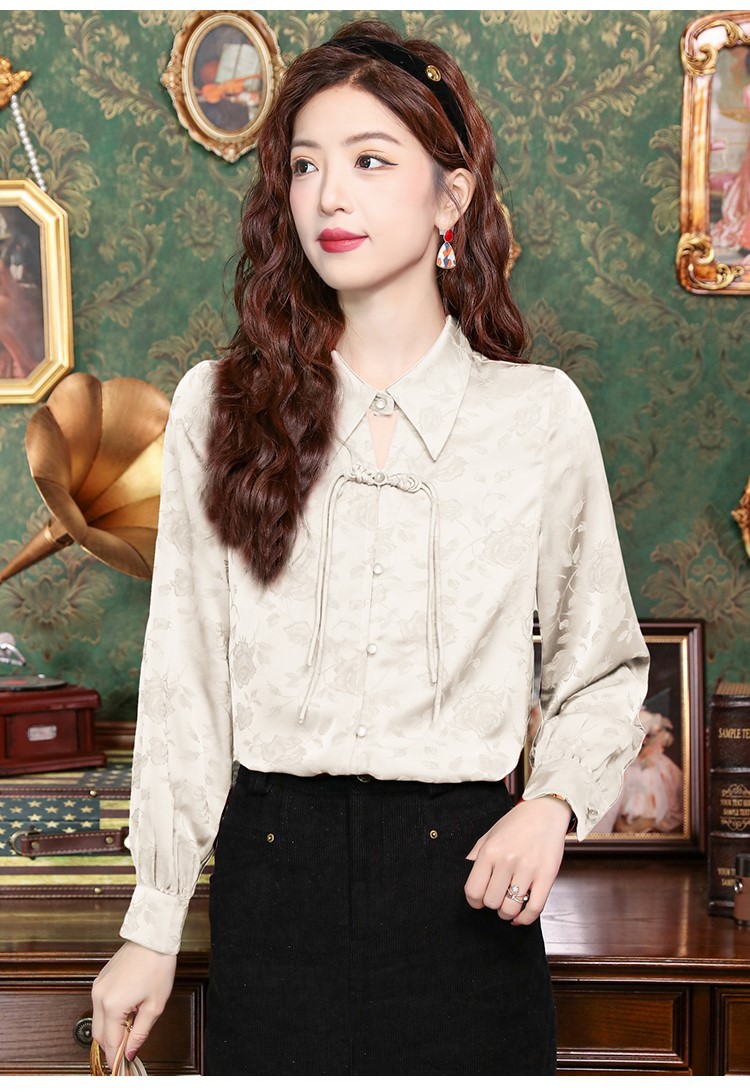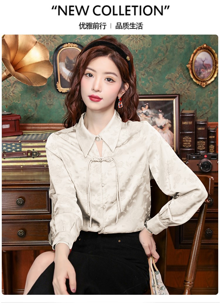 新中式国风红色雪纺衬衫女士春秋季新款时尚百搭气质小衫长袖衬衣
