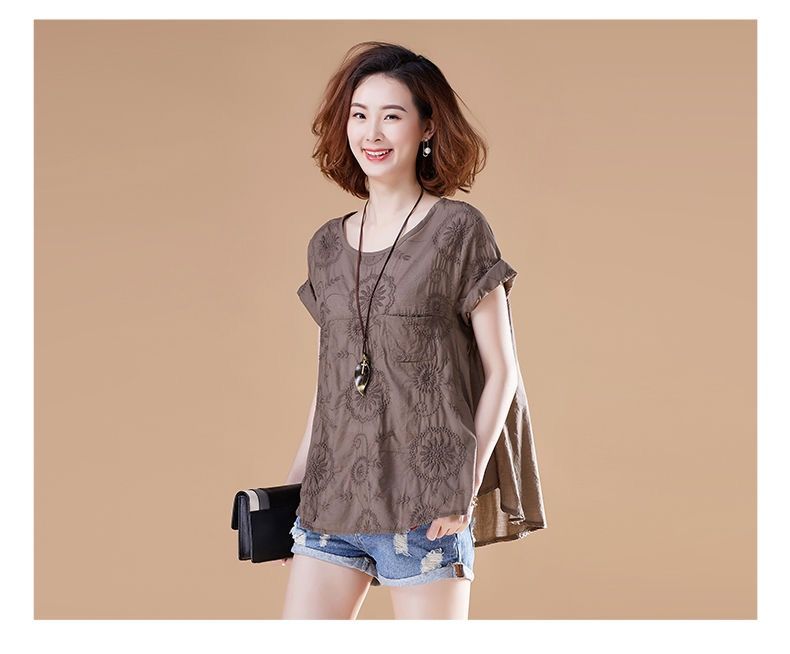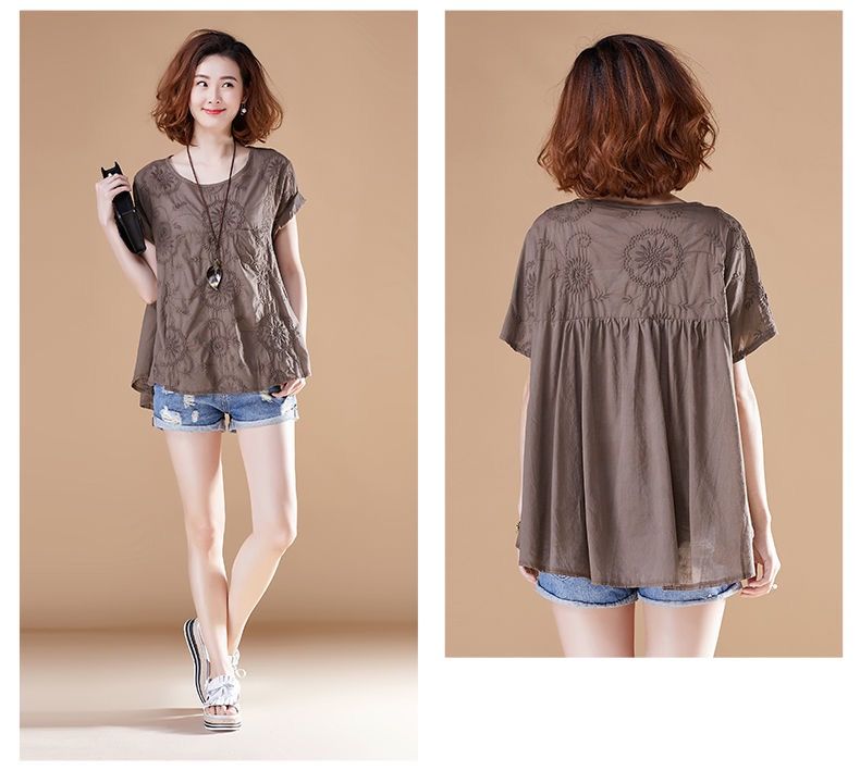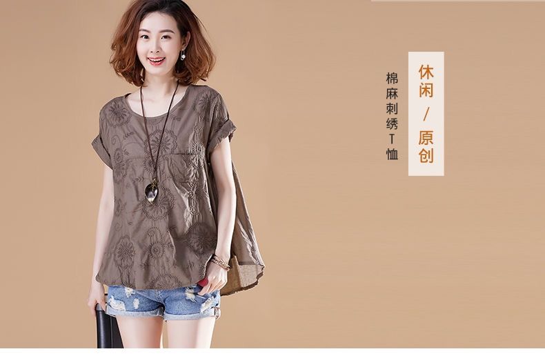 dp14552 高含棉刺绣短袖T恤女2022夏装新款宽松休闲显瘦上衣