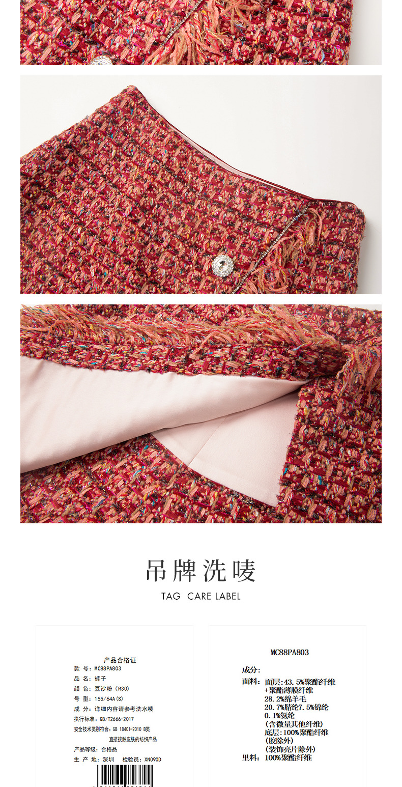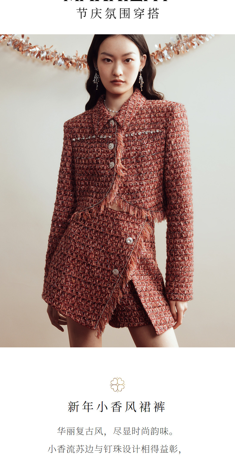 【商场同款】MAXRIENY新年小香风半裙华丽复古小香流苏裙裤23冬款(货号:MC88PA803)