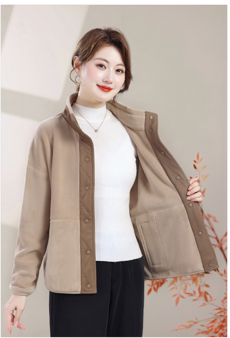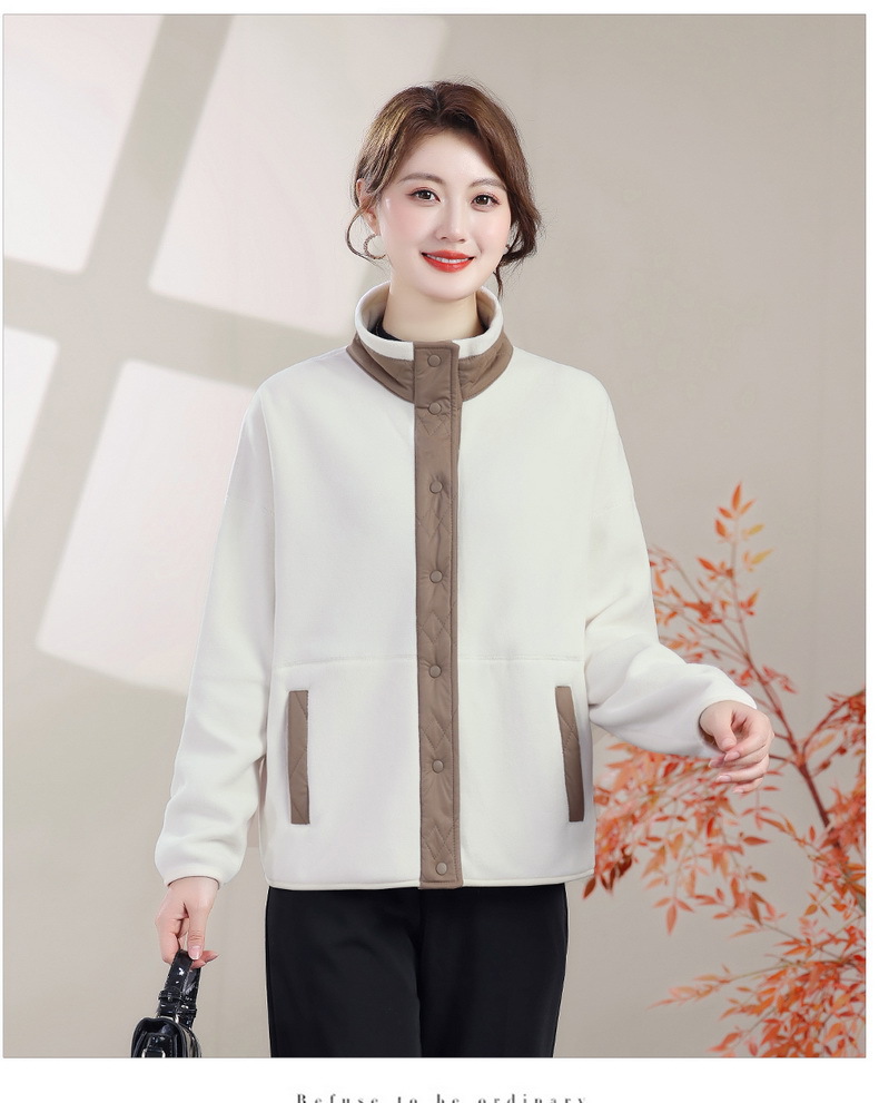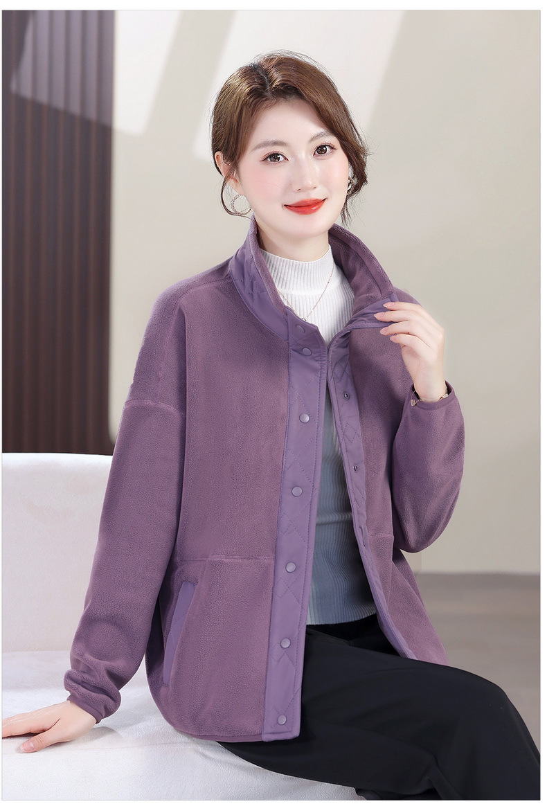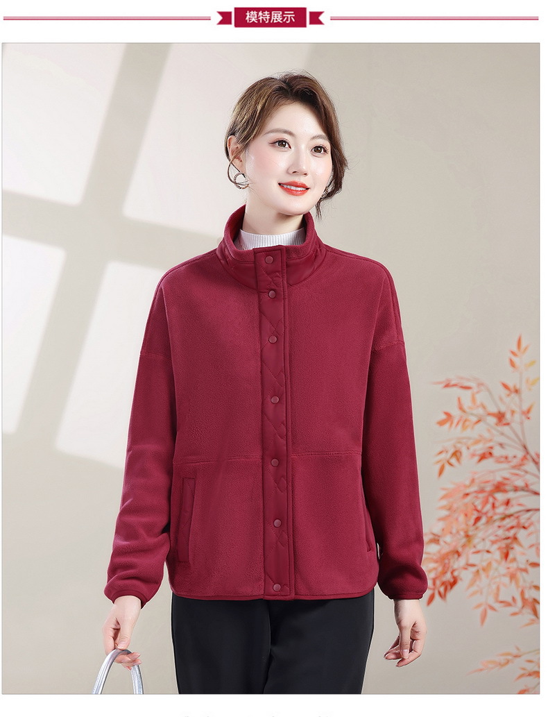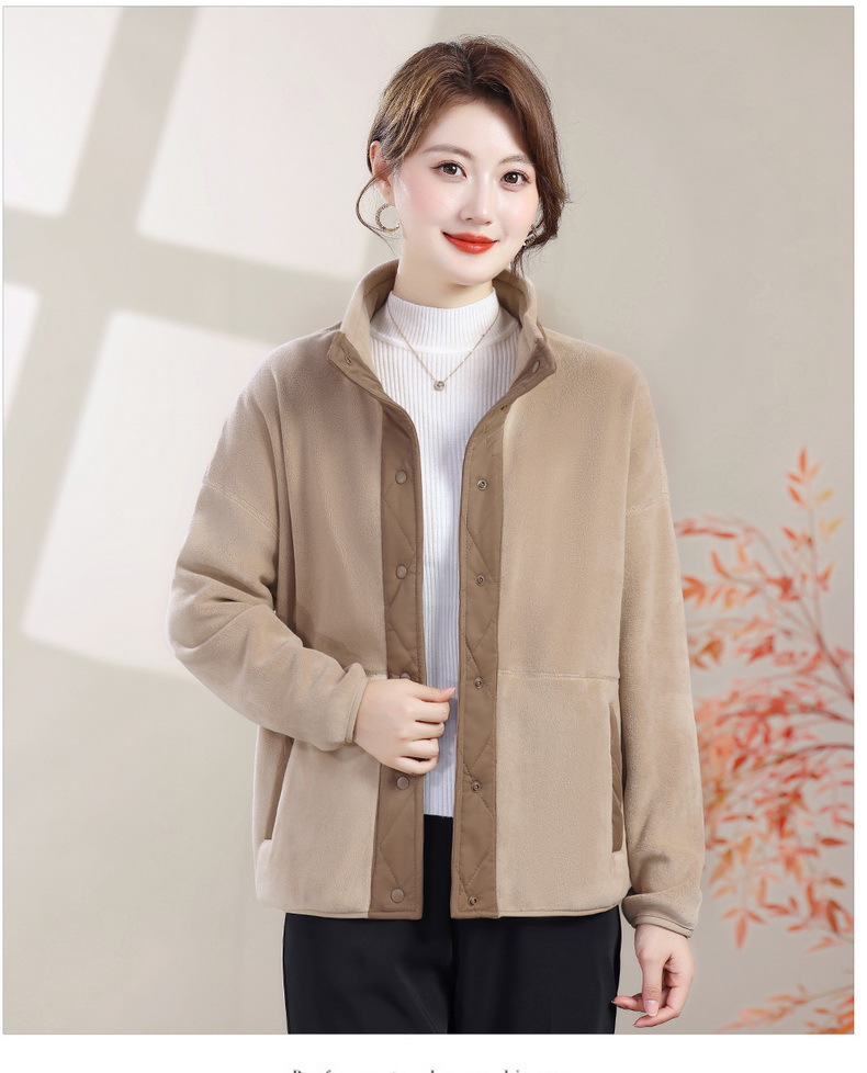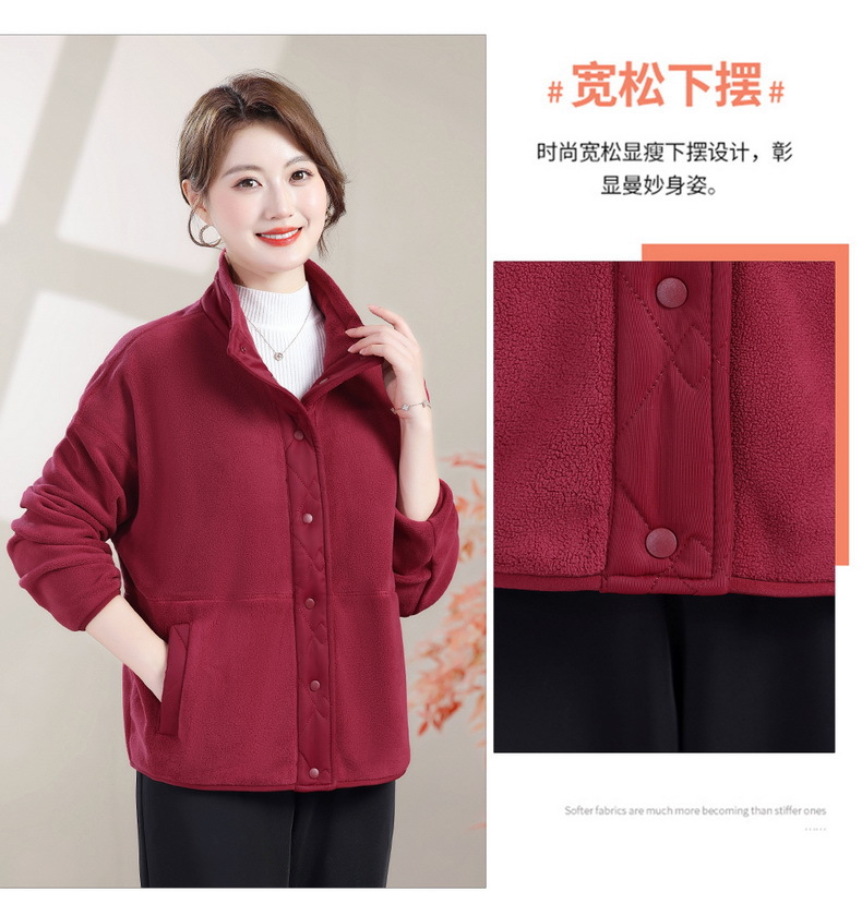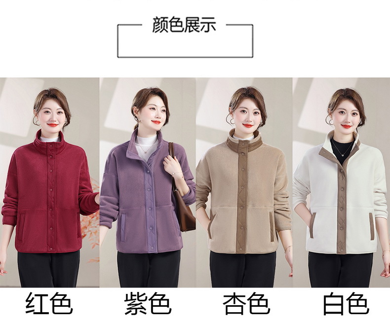 妈妈摇粒绒外套女秋装开衫外套新款中年人春秋洋气上衣老太太衣服